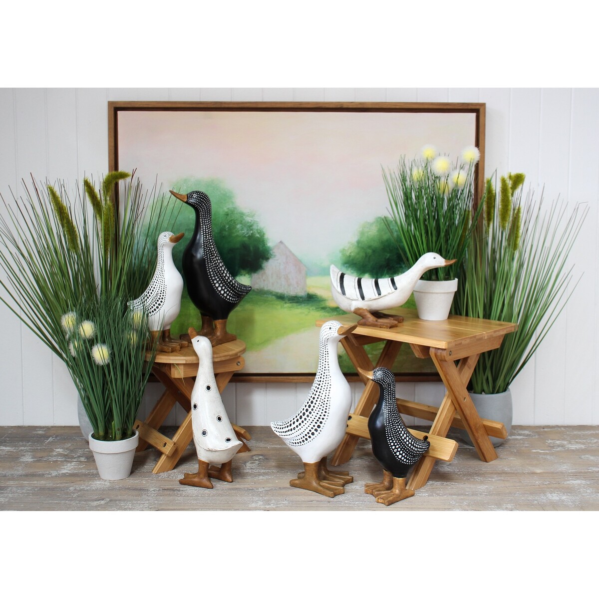 Did you know that the feathers of ducks are completely waterproof? No matter how deep they dive or how long they remain in the water, their feathers keep their skin from becoming wet. Apart from this amazing evolution, the ducks themselves are stunning beauties. They exist in various sizes and colours. This is why the impressively beautiful Duck w/Black Dots Short is a smaller version of the bigger Duck w/Black Dots Tall.
