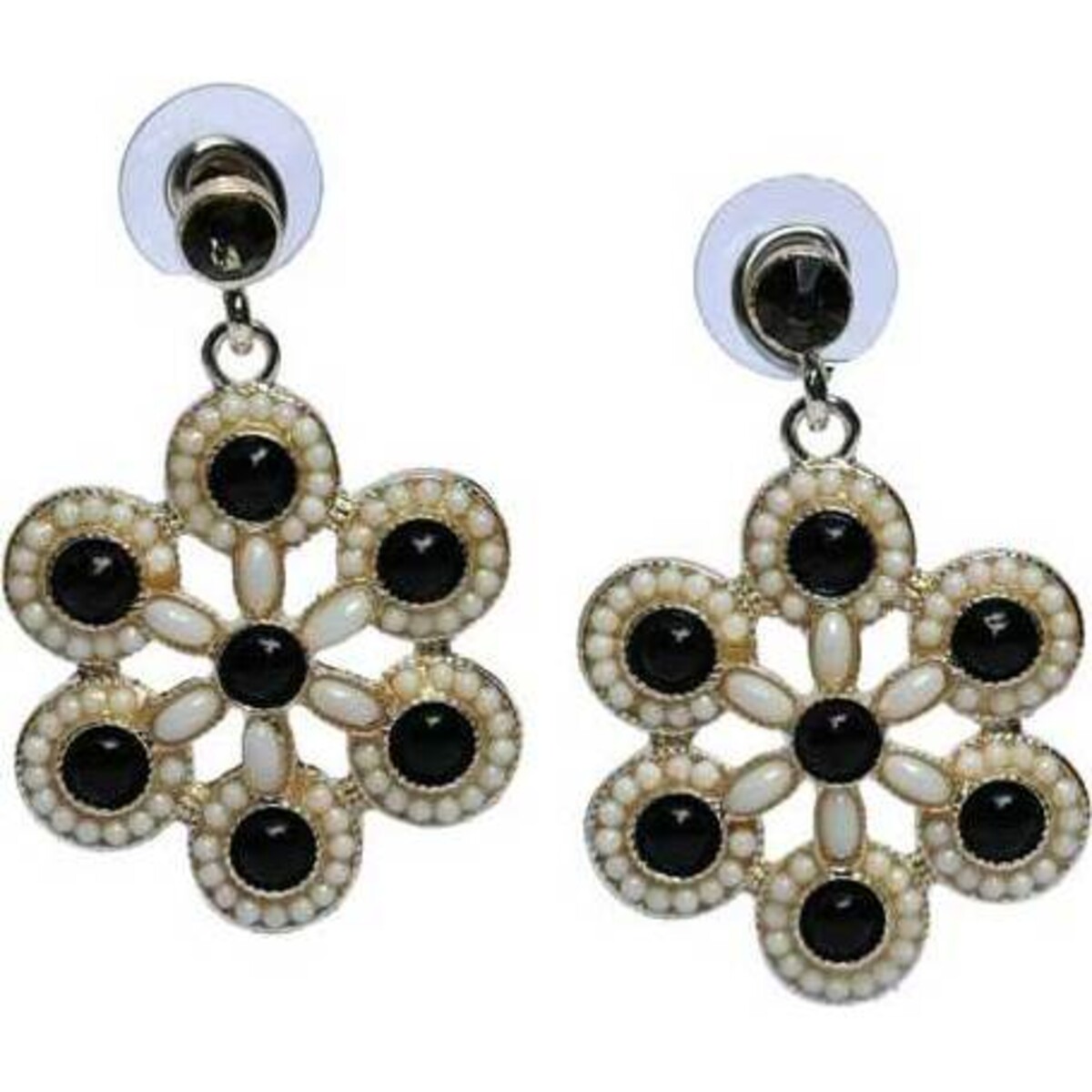The Black Flower Spike Earrings are a delightful play of black set against creamy white to create an effect most magical. Earrings do play an important role in dressing up a simple look to make it seem more elaborate. This pair of earrings has been worked on in metal alloy and is lightweight enough to be worn for day long needs. The manner in which the diamonte have been fitted on to the earrings will not cause any kind of missing beads or missing glitter. Fine workmanship ensures that the pair will be durable and wearable over many usages. The cluster of diamonte look gorgeous set as they are in a perfect pattern, very vintage and detailed in its appeal. It will look particularly attractive if worn as part of the evening dressing though worn to work with formal office wear will also make it look amazingly attractive. A fine specimen if great design and wearable everyday jewellery that matches the need of most modern women who want jewellery to be practical and effective.