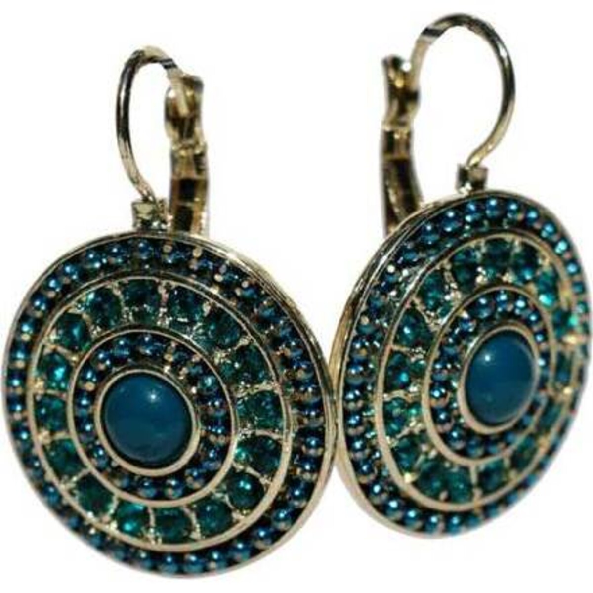 One believes that beauty comes in many kinds of packages, and this is one combination that cannot be ignored - silver, blue and the glittering diamonte in a great mix of colour and style so reminiscent of the days when the way to dress was for effect and jewellery was all about creating a dressing highlight. This pair of earrings is so pleasing to behold and so easy to snap on that they will soon be one's all time favourite. Dramatic when worn with some other paired pieces or subtle and romantic if worn by themselves. The glitter of the diamonte, the dull shine of silver and the blue Cerulena at the heart of the design look gorgeous yet simple, dramatic yet elegant. One can easily wear it with day time clothes or in the evenings with more formal dressing. The earrings sit very well on the lobe of the ear and off set one's facial features with their pretty looks. A lightweight pair that will cause no discomfort even if worn for longer hours. A great buy if one is looking for one of those pieces that add a lot of sizzle to one's appearance with one stroke.