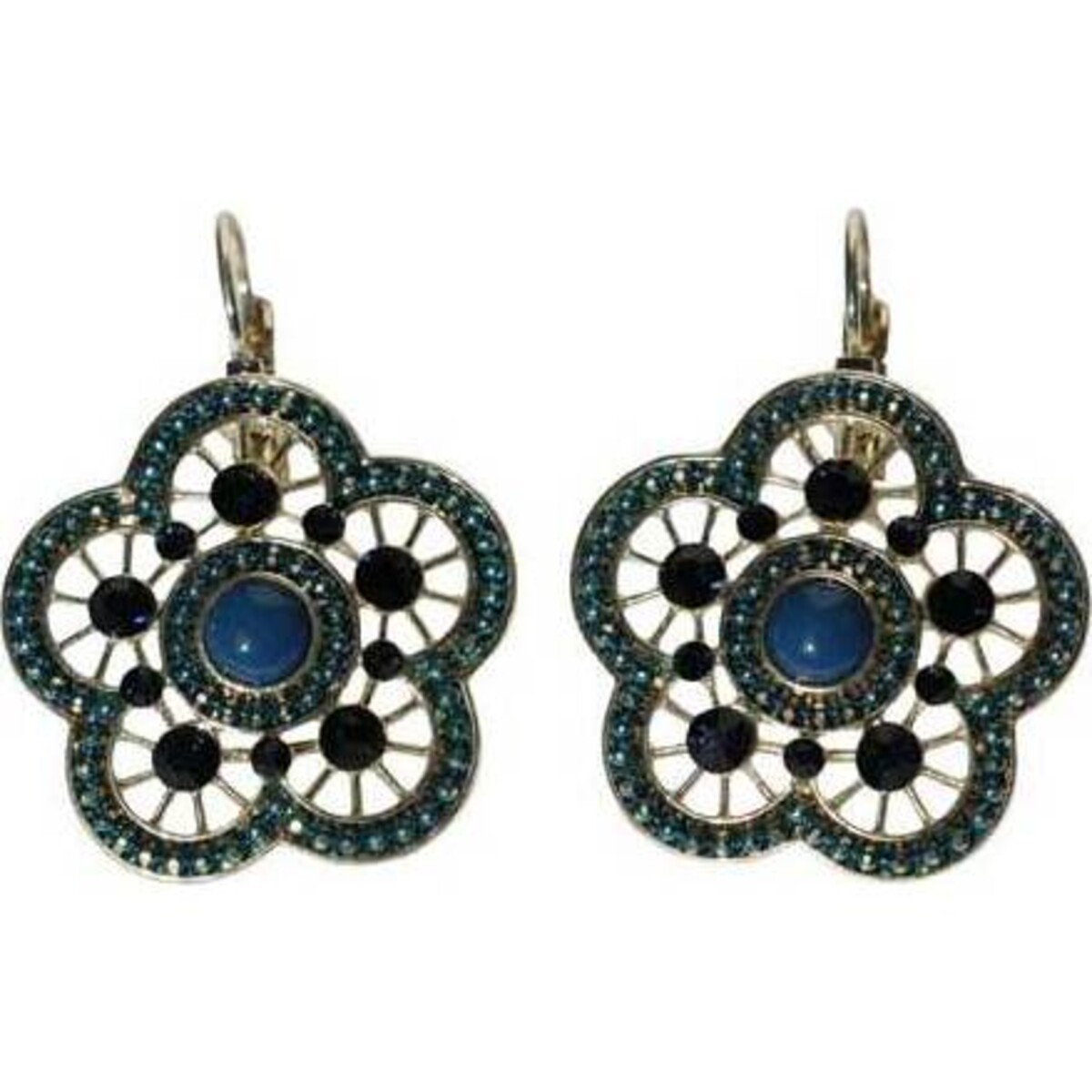 This rather charming pair of earrings look all the more stunning because of the manner in which a darker blue has been combined beautifully with a lighter shade. The centre of the earring is the eye of the floral whorl, made of deep blue bead and each of the roundels that radiate outwards is studded with blue crystal like stones-glittering with every movement. The pair of earrings is made of a lightweight metal alloy which will not feel too heavy on the lobe and not cause any discomfort. The best part is the manner in which this pair of earring combines delicate design with the thought of making it as wearable on a daily basis as possible. Most pieces of jewellery one possesses is either too glittery and large for daily wear or way too small and insignificant looking for special occasions - this particular set balances that act well. The smooth finish will ensure that it will not get caught in any fabric. The colours on this set is clearly a winner as is the fact that it'll look as fascinatingly pretty in the morning as it will do at night.