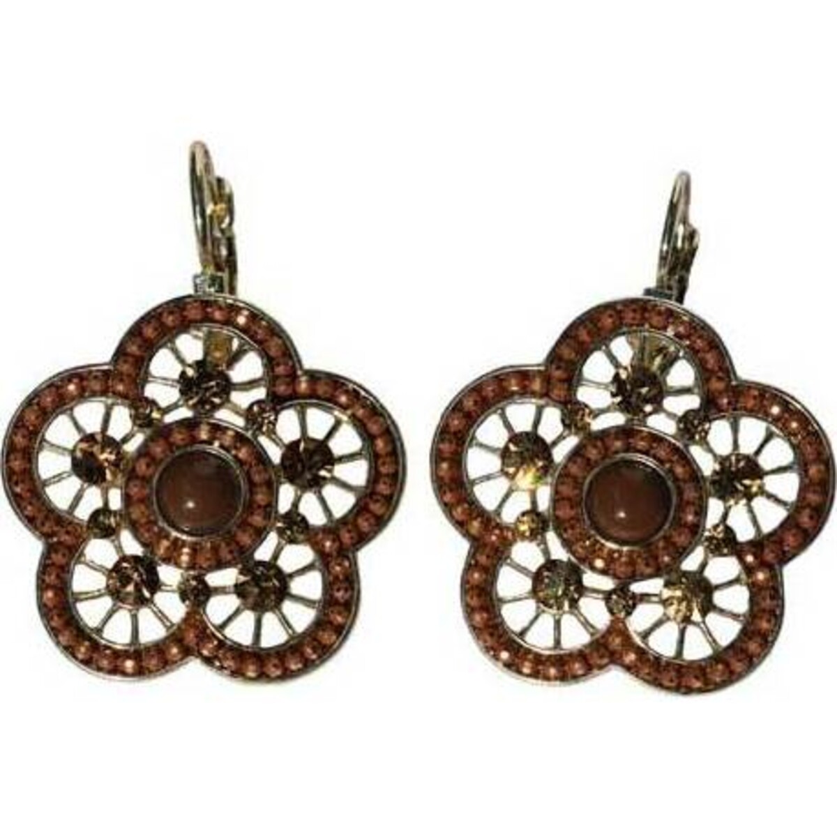 Earring look fabulous on anyone and when it comes to upping one's look many notches higher, a good pair of earring seem almost an indispensable part of one's dressing. This pair of diamonte studded earrings comes in metal alloy material which is sturdy and easy to slip on. It is encrusted with glittering diamontes in a flattering tawny golden colour. The shape and size of the earring would look great on anyone. The look of the earring with its distinct shape, and the manner in which the diamantes have been given a pattern, look stunningly attractive and is bound to draw ample attention. The delicate floral pattern is exquisitely worked on with glittering tawny coloured diamontes and the effect is quite dazzling. The length of the danglers is not so long that it cannot be worn in the day time. A head turner to say the least, this will be one of those rare jewellery pieces that will fly off the hook because of its unique colour and its superior craftsmanship.