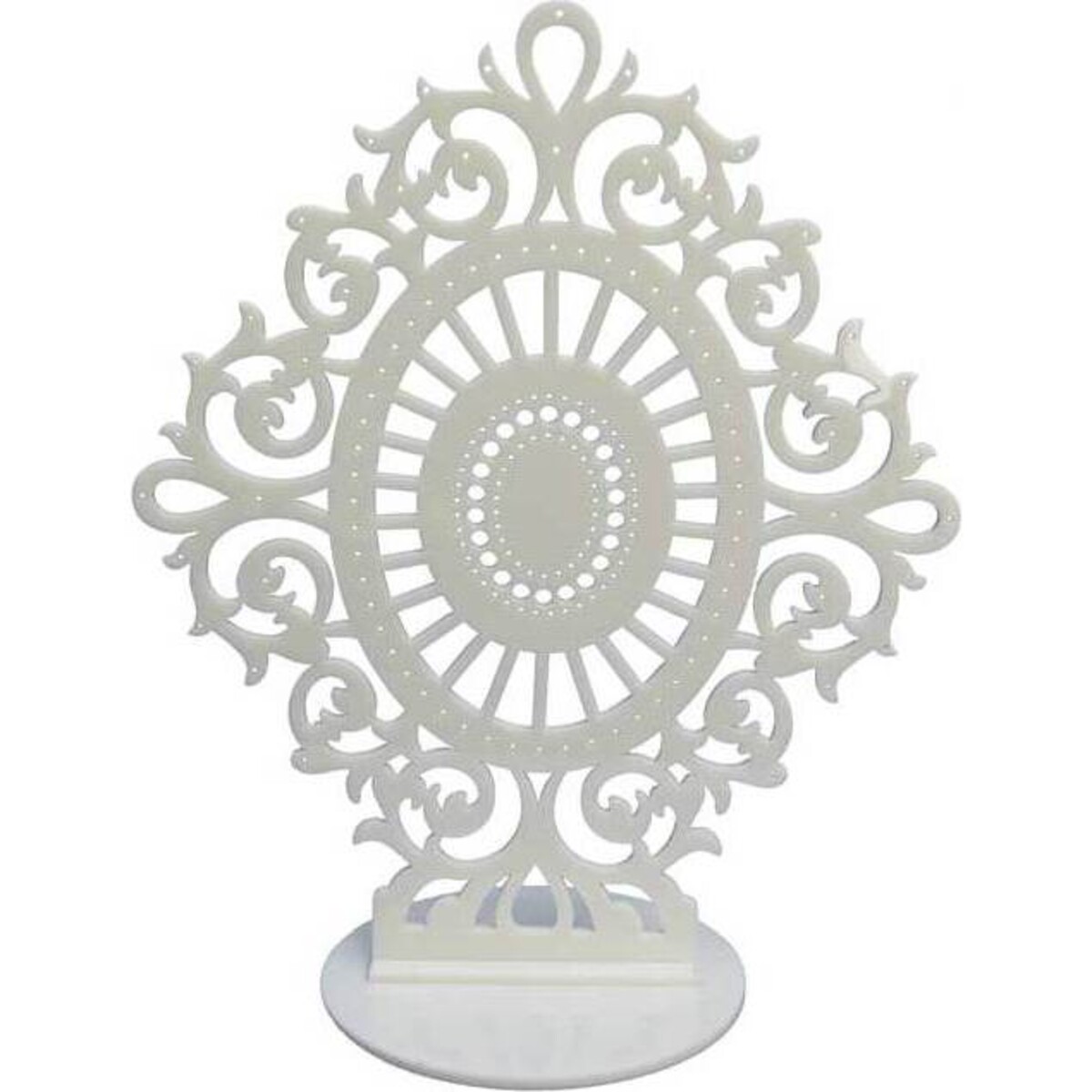 This Large Vasili Earring Stand from LaVida is just what you need to organize all those earrings so you can always find just the pair you need when you need them. The white stand features a large diamondesque shaped piece complete with an oval at the center that has swirls coming from it, all of which is dotted with small holes for the earrings. At the bottom is a flat round stand so you'll never have to worry about the piece falling over. Thanks to the white colouring, it'll be able to complement any shade of décor in your room. You'll wonder how you ever did without this functional and incredibly beautiful accent.