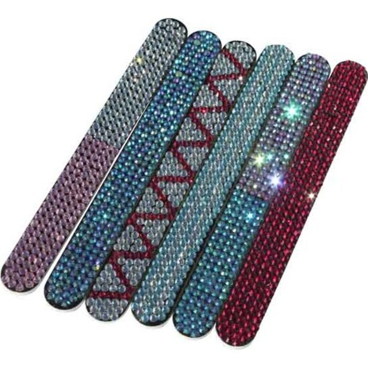 The Emery Boards - Bling Assorted Set 6 comes in diverse colours and design. One board is embellished with faux crystal bling in pastel purple and light blue hue combination. Another nail file is designed with random combination of purple and blue.