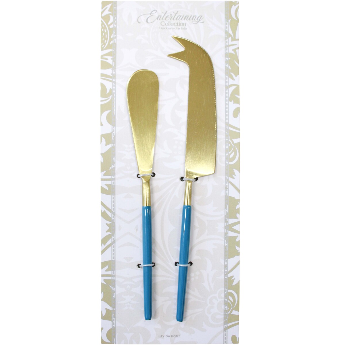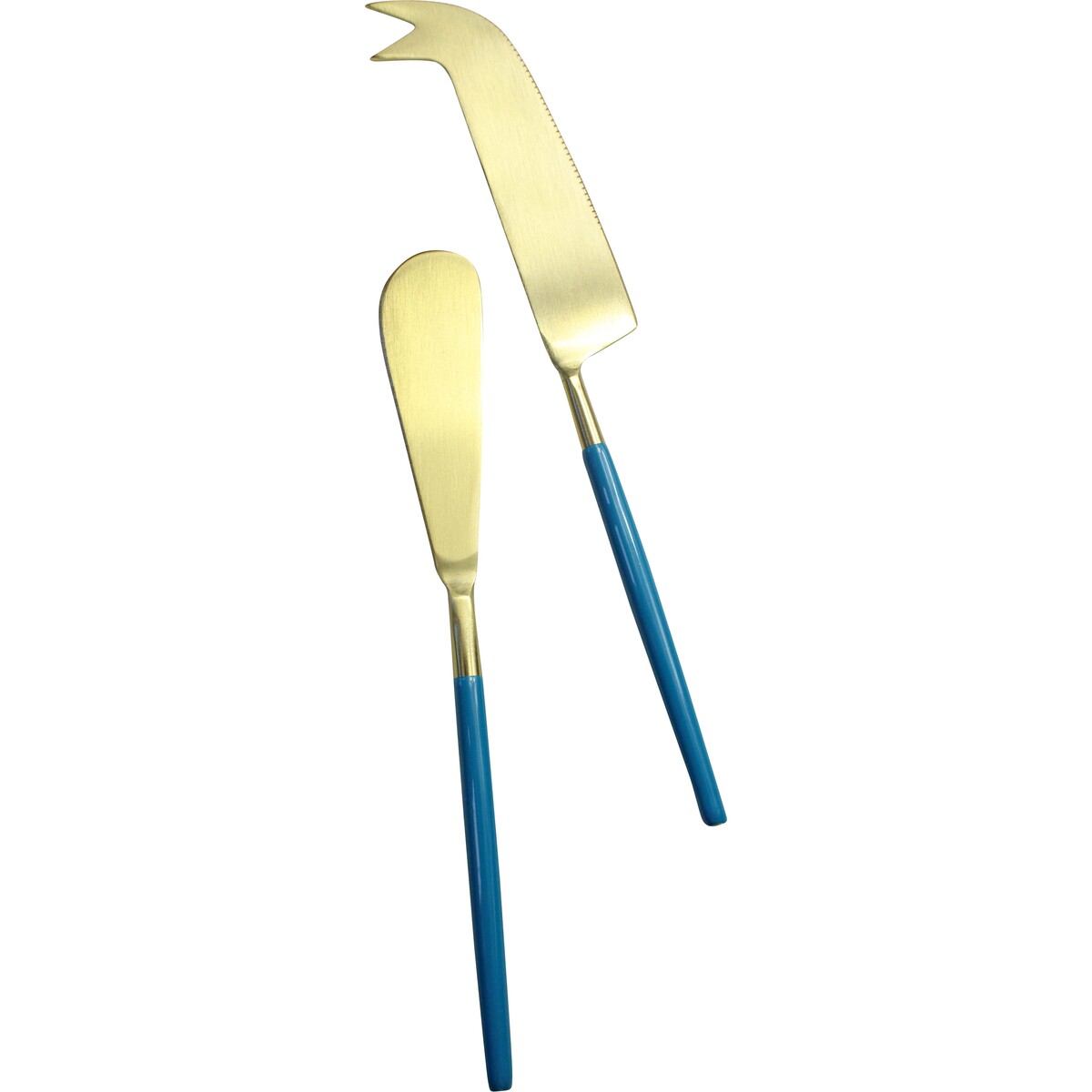 We love the sleek feel of our Entertaining Mix Pointed S/2 set. This stainless steel pair - one at 18x2.5x.5cm and the other at 21x3.5x.5cm - has beautiful gold heads and bright blue handles, making them a standout for serving cheese, butter, or spreads at any gathering. Their blend of elegance and practicality is sure to draw in customers who appreciate stylish yet functional entertaining essentials.