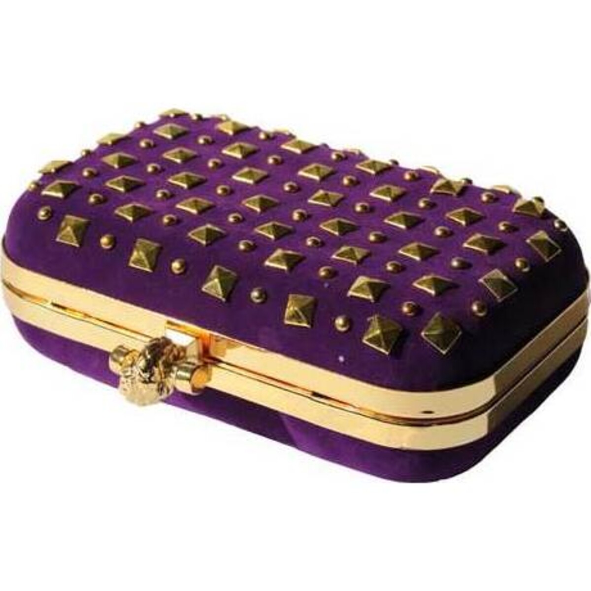 ¥ Hard shell clutch has a lustrous gold tone frame and a click close clasp with a molded woven chain embellishment.