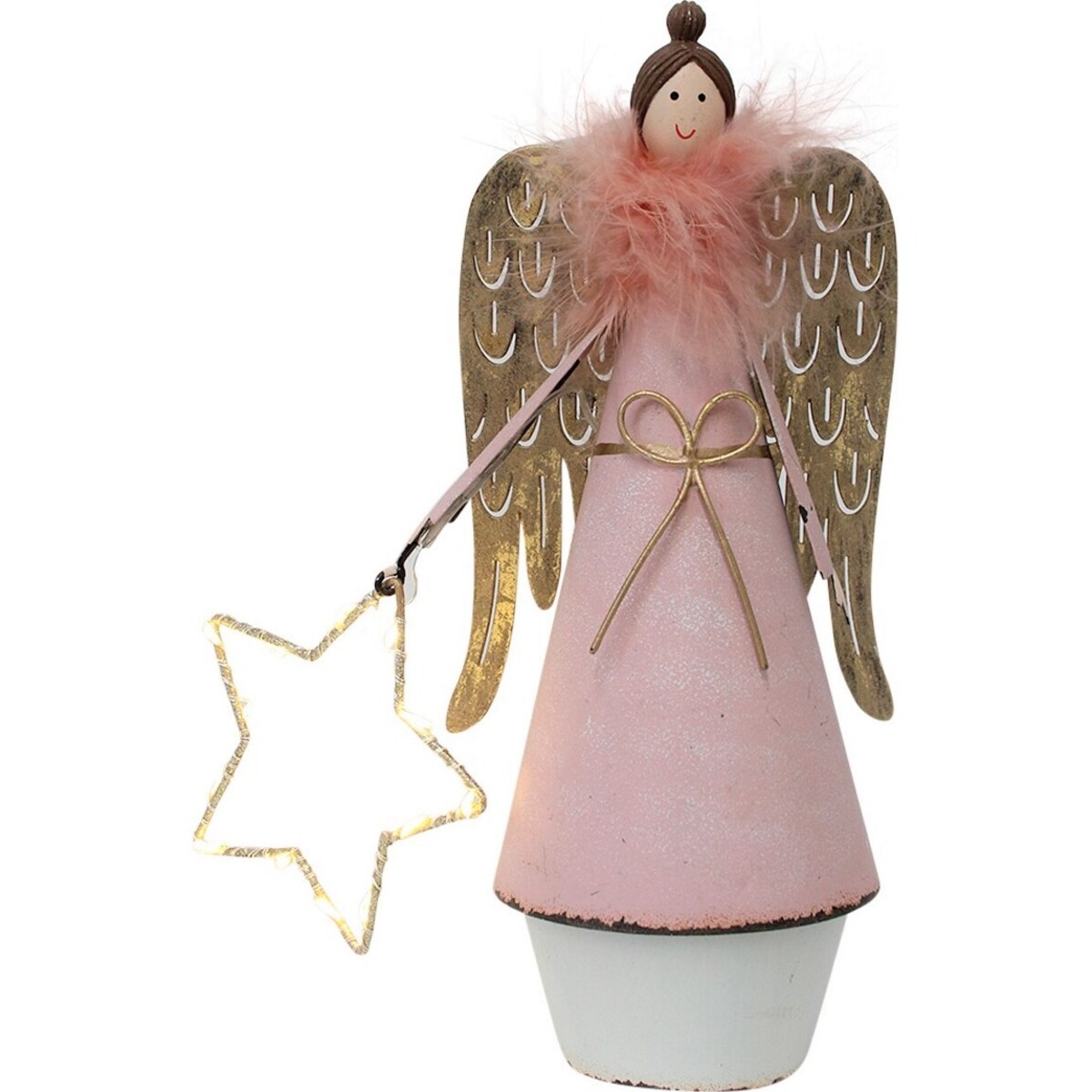 The Fairy Glamour Pink is such a novel piece of artistic craftsmanship that oozes of charming beauty. The female fairy is made of metal in a regal posture possessive of immense decorative value. It has a gold glittering wing and a chic girdle equally made of gold. In her right hand is a silver glittered star while her flowing robe is a pretty pastel pink palette. Standing with a flat base, it can be placed on office tables, display shelves, living room centre tables, dining tables, and on any other flat surface your customer wishes.