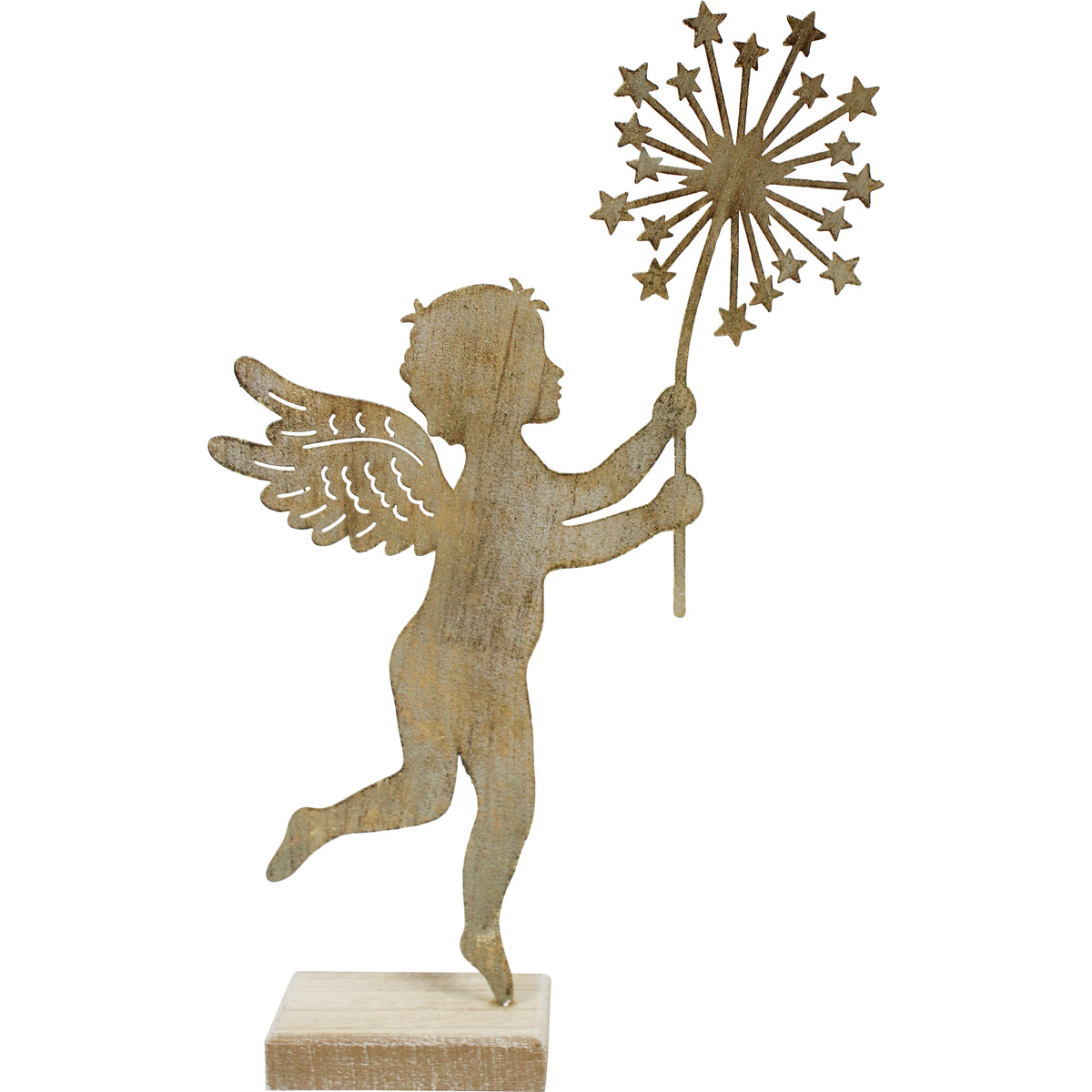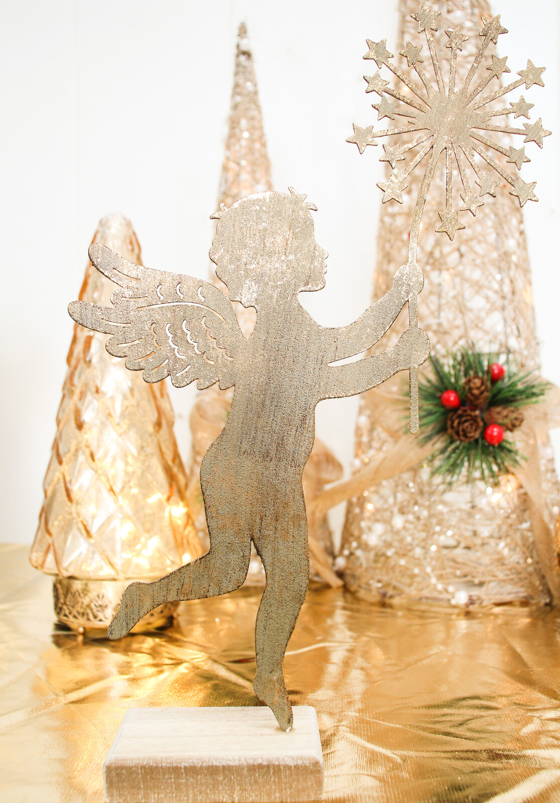 Christmas is a yearly event that is always filled with bustling and bountiful joy. Part of the activities which heightens the joy of Christmas is decoration. This is why this Fairy Gold Dust would be a perfect delight which would blend in easily with every Christmas theme which your customers may intend to create or may have already created. This ornament is made through the use of premium quality metal material which is wrought in the shape of a fairy holding gold dust. The base is that of is a sturdy, square block of high quality wood material.