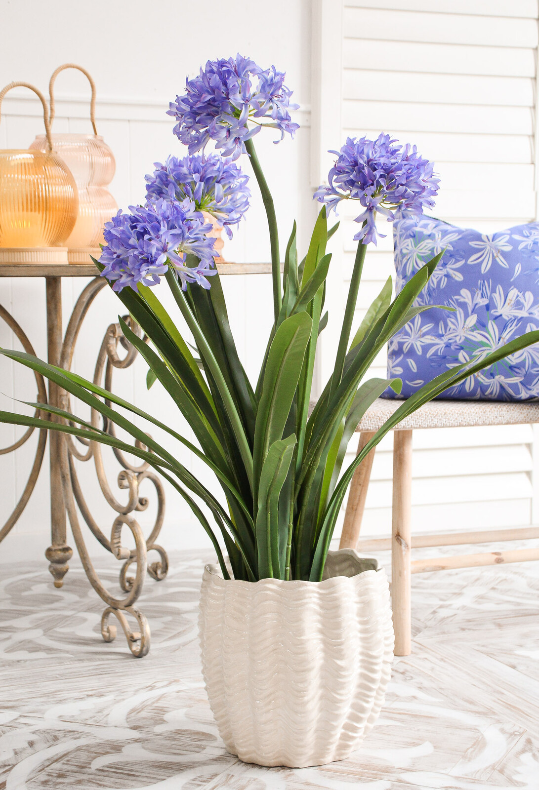 We’ll be the first to admit - our Faux Agapanthus Lrg is far from ordinary. This striking artificial plant stands tall at 100cm, complete with a lovely pot measuring 17.5x17.5x13.5cm. The vibrant purple-blue heads of flowers clustered together in a loose ball, paired with the dark green leaves, create a bold visual statement that instantly brightens up any space.