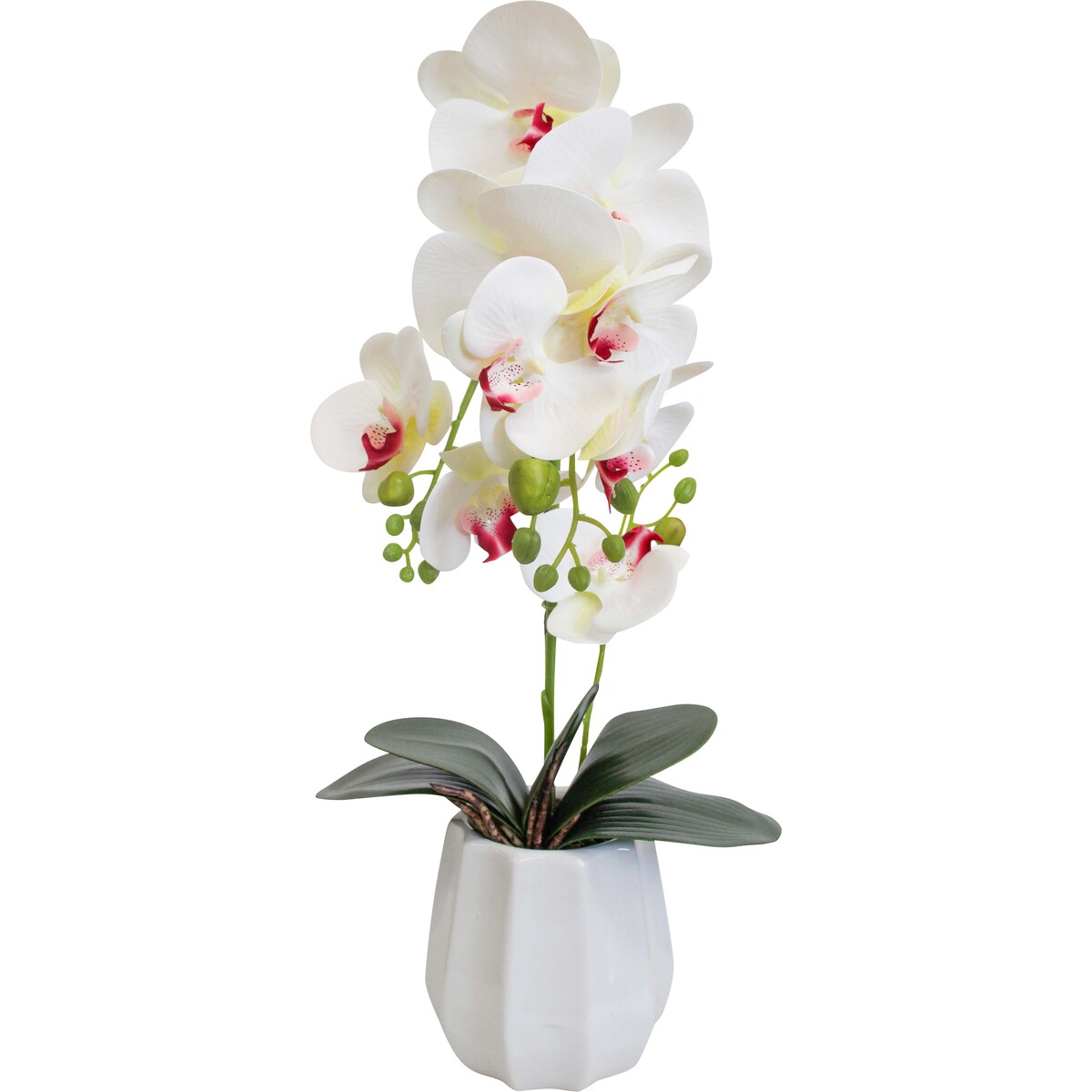 The Faux Orchid Med White is the perfect addition to any home or office space. Standing at a total height of 54cm, this artificial orchid plant is a beautiful and realistic representation of the real thing.
