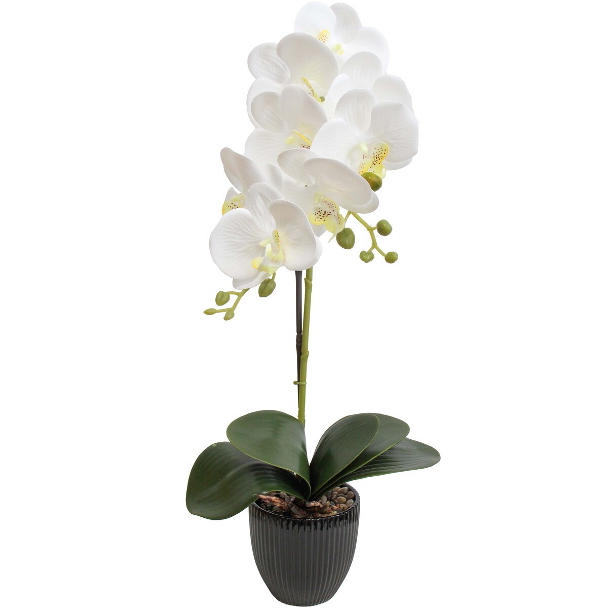 Here’s a great option for those wanting to offer premium faux florals that instantly add some character. Our Faux Orchid Single White is one of our most realistic artificial options - it’s become a firm favourite. Measuring a generous 55 cm high, with its textured grey pot at 10x10x9 cm, the foam and plastic petals and leaves really do pull off that lifelike charm.
