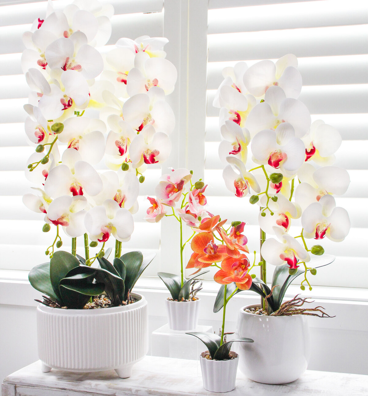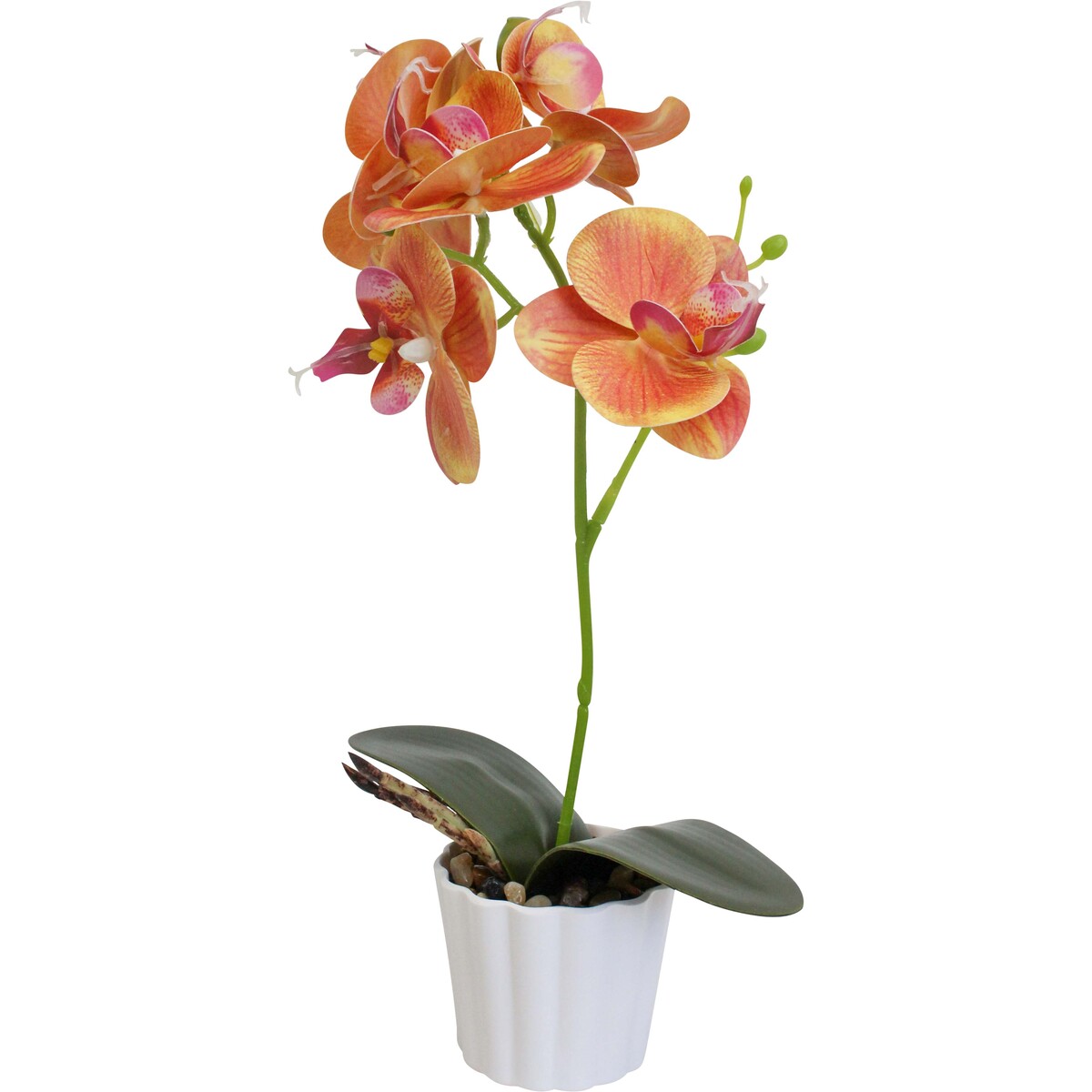 We’ve got to say, the small peach faux orchid is a bit of a charmer and we think it brings a cheerful, surprisingly life-like presence. Without the fuss of watering or finicky lighting requirements, this piece is almost all reward for your customers. The delicate detailing on these orchids holds up even when they’re seen up close - probably why they’re just as handy for a display in a boutique as they are for adding some calm to an office or coffee table. We reckon at 21cm tall, with that tidy 7x7x7.6cm pot, it’s a nice fit for compact spaces and shelves in need of softening. The petals are so vivid - classic peach with hints of pink and yellow – and those strong green leaves finish it off really well. Very easy to pop into any setting, from modern workspaces to more traditional homes, and suits just about any interior where you want instant colour with absolutely zero maintenance required.