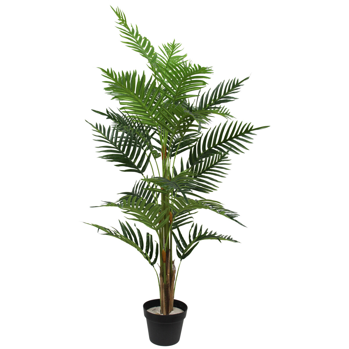 Introducing the exquisite Faux Palm XL, an effortlessly elegant addition to any interior landscape. Perfect for homewares and giftware retailers seeking to enrich their collection with a touch of greenery that requires zero upkeep. Standing at a striking height of 130cm, this artificial palm tree presents a lush canopy of lifelike fronds in a deep green hue, bringing a vibrant splash of nature into your customers' homes or offices. Crafted from high-quality plastic and foam, this faux palm exudes an air of sophistication and durability. Its stately presence is housed in a sleek, black pot measuring 17.5cm by 17.5cm with a height of 13.5cm, ensuring it seamlessly integrates into any decorating scheme. Its generous size makes it a focal point in spacious rooms, while its slender form allows it to grace even cozy corners without overwhelming the space. Though this piece boasts a robust construction, please note its modest base may display natural characteristics such as imperfections, cracks, or chips. These small quirks add to the authentic charm of the Faux Palm XL, much like the unique stories behind each customer's personal decor. We suggest concealing these features with faux soil, grass, or coconut fibre for a thoroughly polished look. The beauty of this faux palm extends beyond its visual appeal - it offers the allure of tropical greenery without any of the maintenance. Imagine providing your clients with a burst of perennial foliage that remains verdant year-round, free from the need for sunlight or water. It is a splendid choice for busy individuals, those without a green thumb, or anyone who desires a low-effort, high-impact decorative element. Let the Faux Palm XL elevate any space with its timeless design, fitting effortlessly into modern, minimalist, bohemian, or traditional decors. Its anticipated demand and versatility make it a must-have for your discerning clientele.