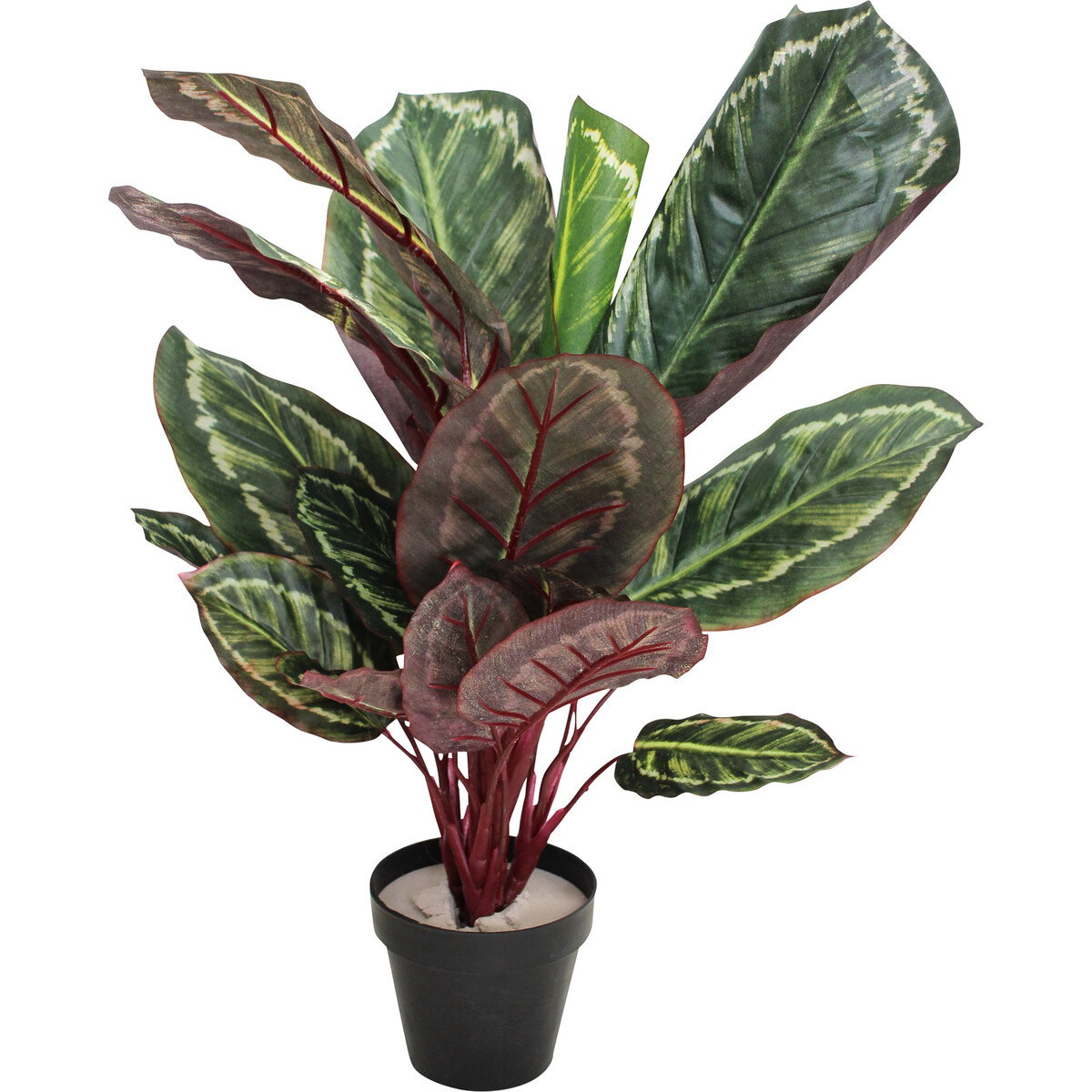 This Faux Peacock Plant is one of those pieces that just comes alive in a room. The way the leaves splay out, all wild but still balanced - it kind of stops you in your tracks, even though you know it’s not a real plant. That bold, veined greenery with those deep burgundy undersides looks really striking against white or neutral walls - it holds its own, even in busy spaces. And we know large faux plants like this have become a hit with interiors clients who want something lush but don’t have time for watering or maintenance.