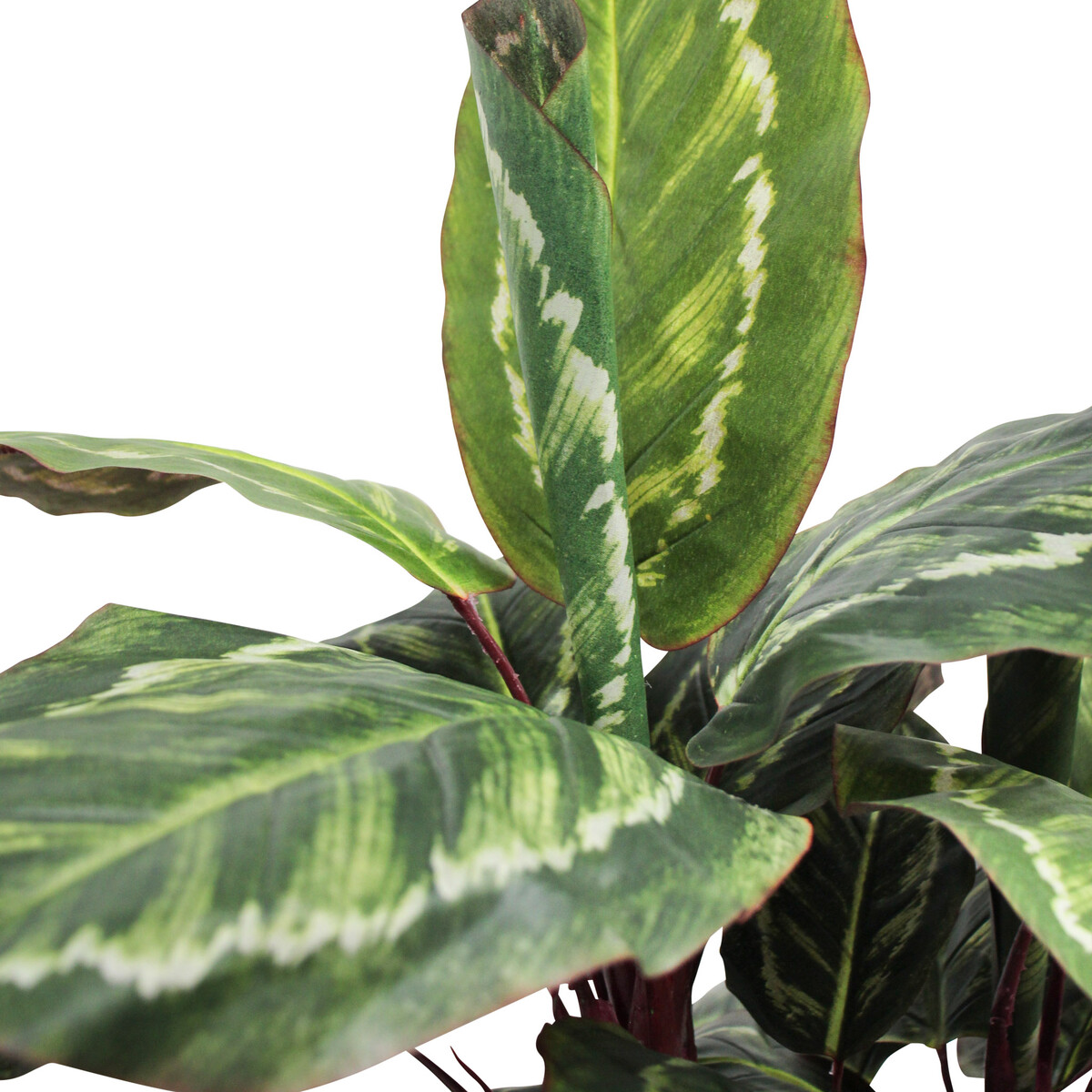 The dark green leaves with their lighter patterning just look good with so many different decor styles - tropical, contemporary, casual. We keep hearing it’s the magenta-burgundy stems and slight purple underside that really sell people on this one, though. The plastic and foam construction means its easy to clean and maintain - a quick wipe down every now and again to get rid of any dust works wonders.