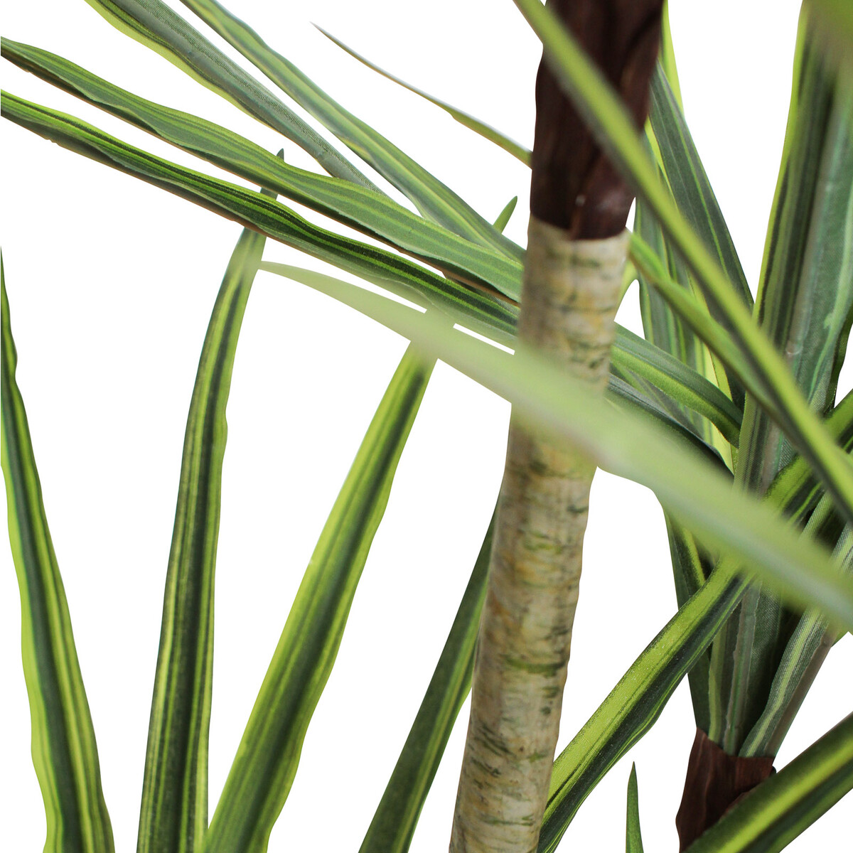 Our faux Yucca Lrg is honestly a bit of a chameleon - it manages to fit right in with all sorts of homewares styles. There’s something about the vibrant, slightly wild green leaves and realistic woody trunks that looks so at home against rattan pieces, linen fabrics, or even sleek minimalist offices. We think it’s the perfect faux plant for stores whose customers want a classic look that’s modern enough for city apartments or busy workspaces. This one is 130cm tall in total, and the plastic pot is 17.5x17.5x14cm. The colour has been cleverly done to mimic a real yucca without tipping into ‘trying too hard’. This means it brings those clean lines and lively energy that people love from indoor plants but with none of the hassle or mess (or maintenance). That’s partly because of how well our factory has created this plastic and foam duo - everything’s been properly attached and it really shows in the finish. Oh, and a quick heads up - these do arrive with a concrete base inside the plastic planter. It might have an exposed edge or some cracks or chips around the top. They’re meant to be covered by faux soil, coconut fibre or whatever your display preference is (the extra open space can make styling super flexible actually). Just want to be clear there’ll be no claims for imperfections on the base itself though - it’s designed to be covered up and hidden under your preferred finishing touch. Customers always seem to come back for this kind of thing - it sits perfectly in hallways for a warm welcome home at the end of the day or styled as part of a living area scheme where real plants just won’t work. Great for offices too - so many shops pop them in deskscapes when they need something easy to keep neat year-round.