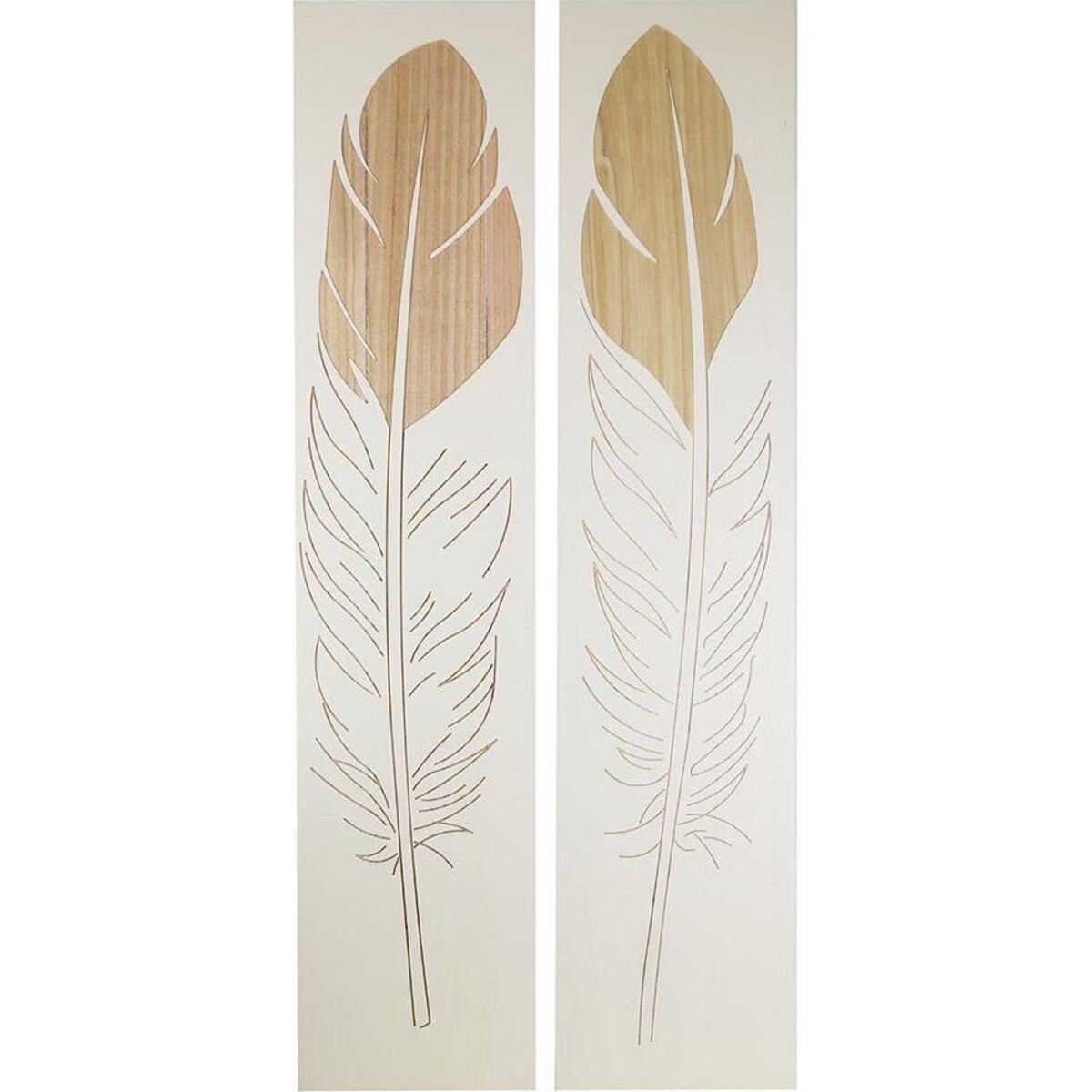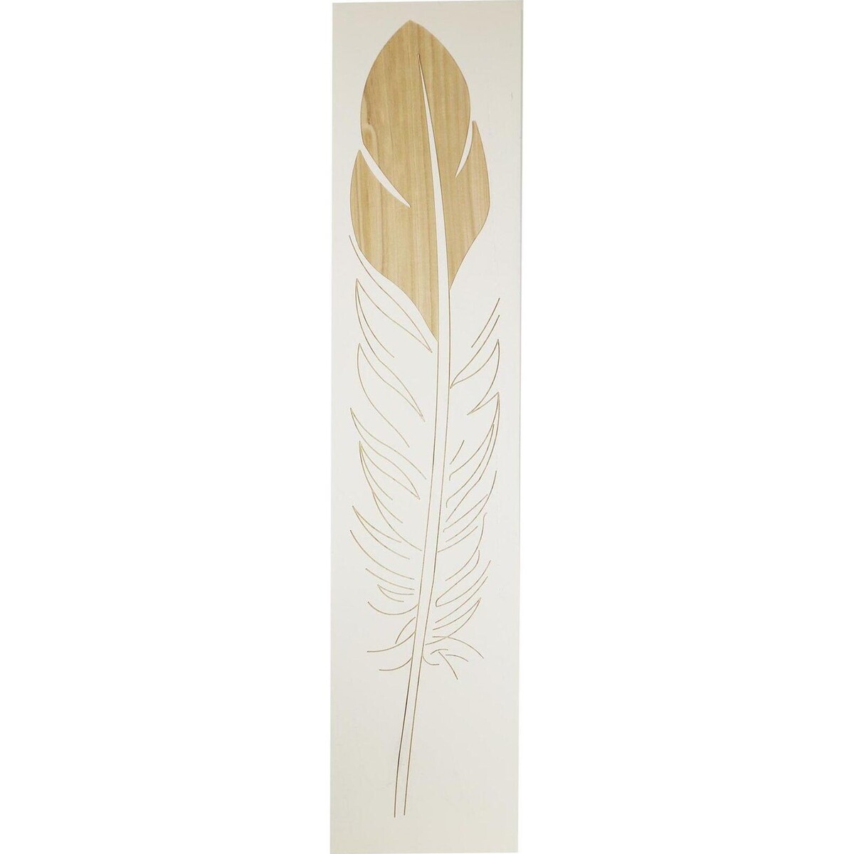 Wall art is the best means of adding a certain focus to your décor theme and this wall plaque made of MDF adds a significant amount of class and style owing much to its simplicity as well as its very eclectic design and colour combination. The single father has a lovely definition on top while the lower portion is simple etching; it is this duality that adds the subtle mystery to its form. While feathers are truly the symbols of freedom and ritualistic tribal themes - this one here ads a sense of lightness and a feeling of utter softness and relaxation that feathers inherently convey. The plaque is as long as 117 cm tall and could be placed from the floor level. The width is 23 cm and thus its proportions will allow it to be placed on large walls that need to help define the look of the space. A wonderful way to add a touch of modern contemporary feel to the space is possible with such art works. Could be teamed up with another such plaque with feather design to make a much larger display for larger rooms.