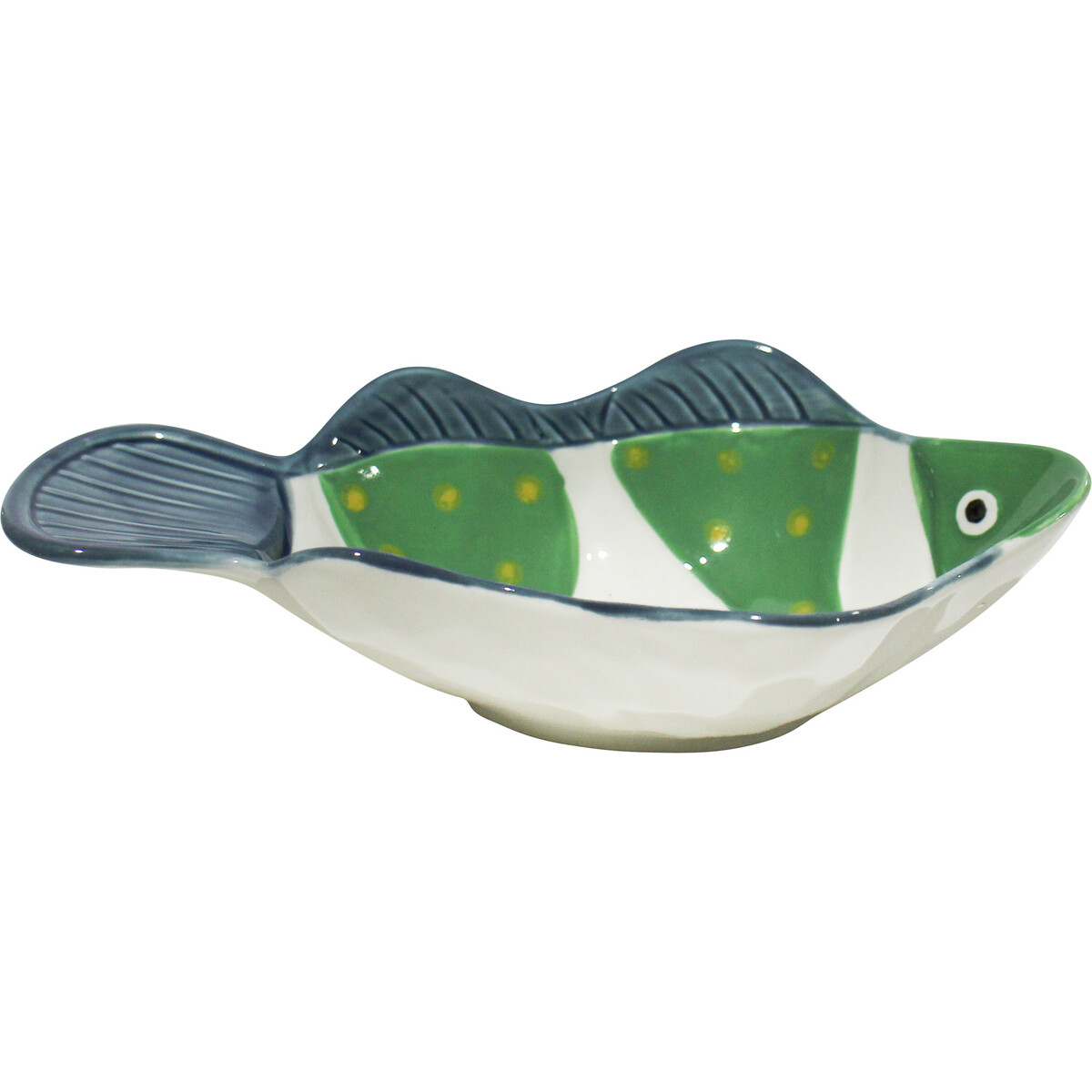 Unique, colourful and creative, this piece is inspired by fish to make a bold statement on any table. An eye-catching design that kids would love to eat with, hosts can throw a special kids-themed party by adding this piece to their collection. Fish Bowl Oscar suits all entertainment needs as it can be used to serve delicious snacks, fruits or salads. Which makes it suitable for all casual servings of appetizers and desserts. It can be used for both hot and cool meals, this can withstand any temperature. This delightful dish is a top-quality ceramic piece with a gorgeous gloss finish. When not in use, this piece can add a playful touch and bring delight into any space.