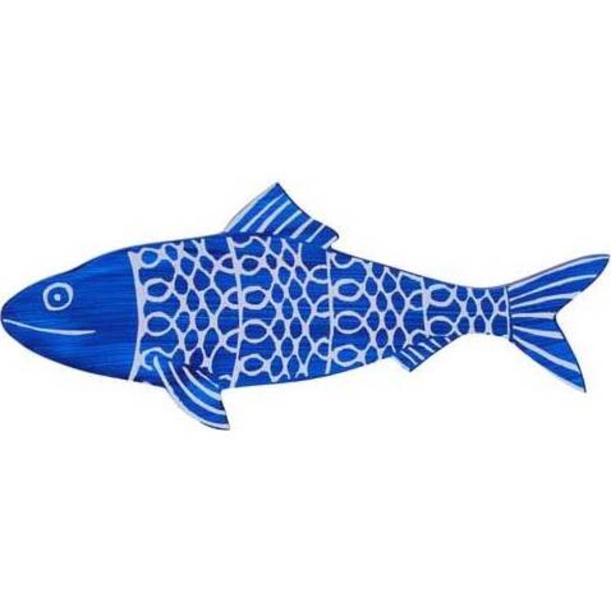 Take a step in a new direction by adding this cartoon - like fish plaque to the walls of the home. The beautiful indigo painted fish is carved from high quality wood that is difficult to chip. The matt feel and rough texture gives it a worn - in look. What makes it even more unique is the Aztec - like pattern painted in white. This adds an almost modern feel to something so...country - like! Draw the attention of any houseguest by placing the plaque above the mantel, in the kid's room, or even in the kitchen.