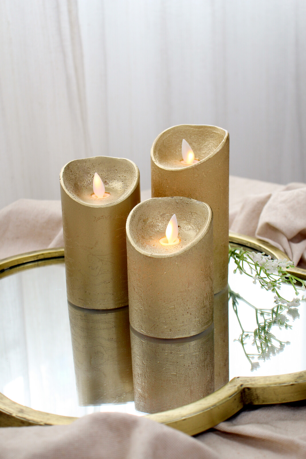 Gold candles have that extra special factor, don't they? And ours are a real show-stopper, with their ultra-realistic flicker and soft metallic finish. You won't believe how much of an impact our Flameless Candle Large Gold can make in a space, whether it's just one on a console or half a dozen creating some serious drama on the dining table.