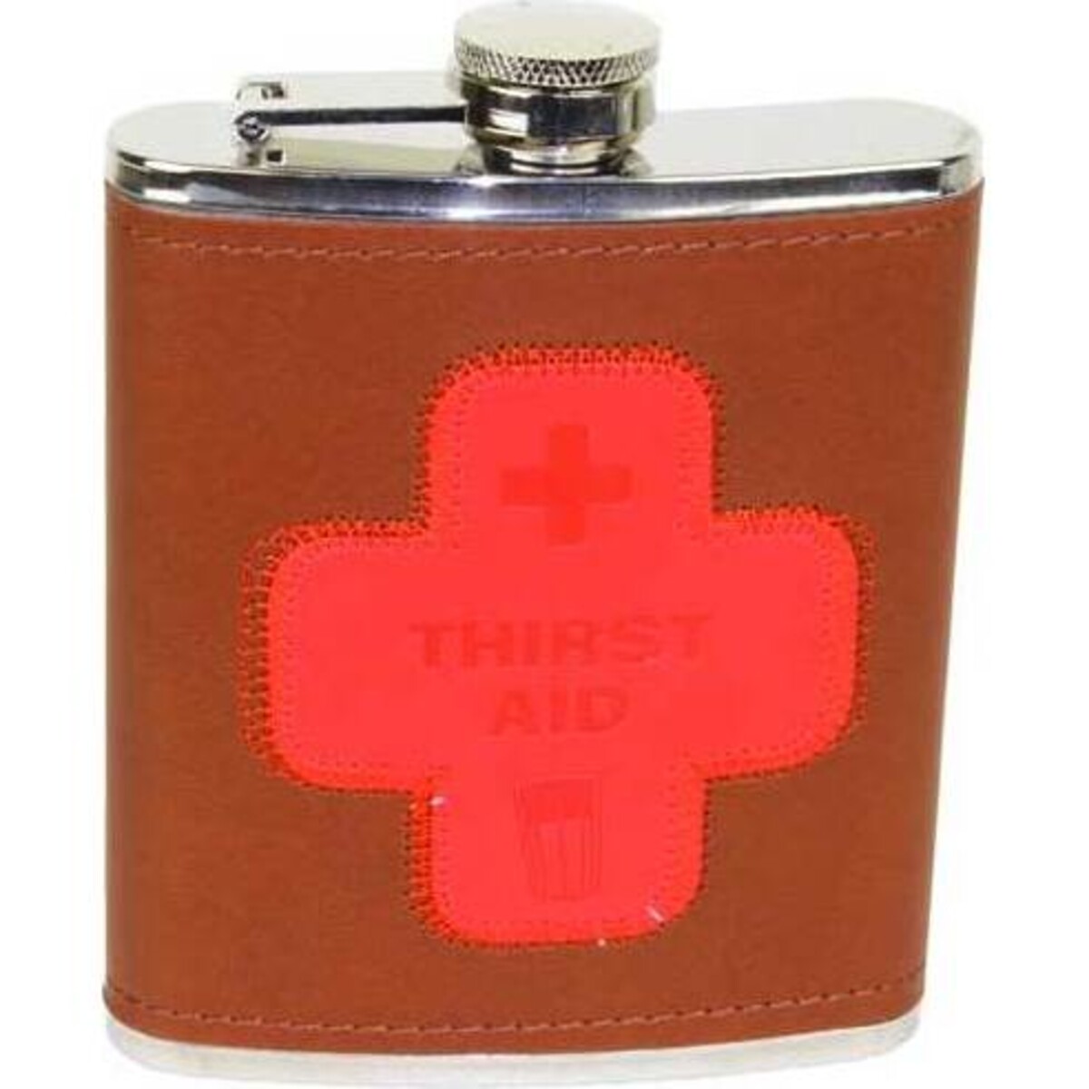 Flask Thirst Aid is rectangular in shape and has measurements of 9x12x2 cm. It is made out of metal, with the body bearing a red covering that featuring a bright - red cross at the centre to depict its application. The top of Flask Thirst Aid exhibits a shiny, silvery form, with capped opening at the centre - most part. This item can be of great help for any setting where intense muscular activities are conducted. It is also beneficial when heat seasons come up, enabling an exhausted or dehydrated individual to achieve a sense of refreshment within a short time.