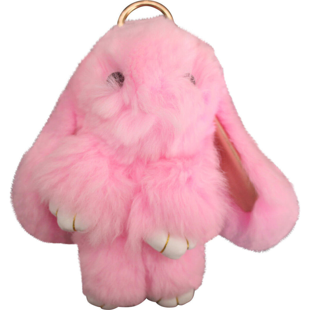 Accessorize your bag or keychain with this soft and fluffy pink bunny key ring or hang it from your rear-view mirror! Hanging from a golden metal ring for extra style, this funky key holder crafted from faux polyester fur measures 18cm x 11cm x 6cm approximately and will add some cute character to your belongings.