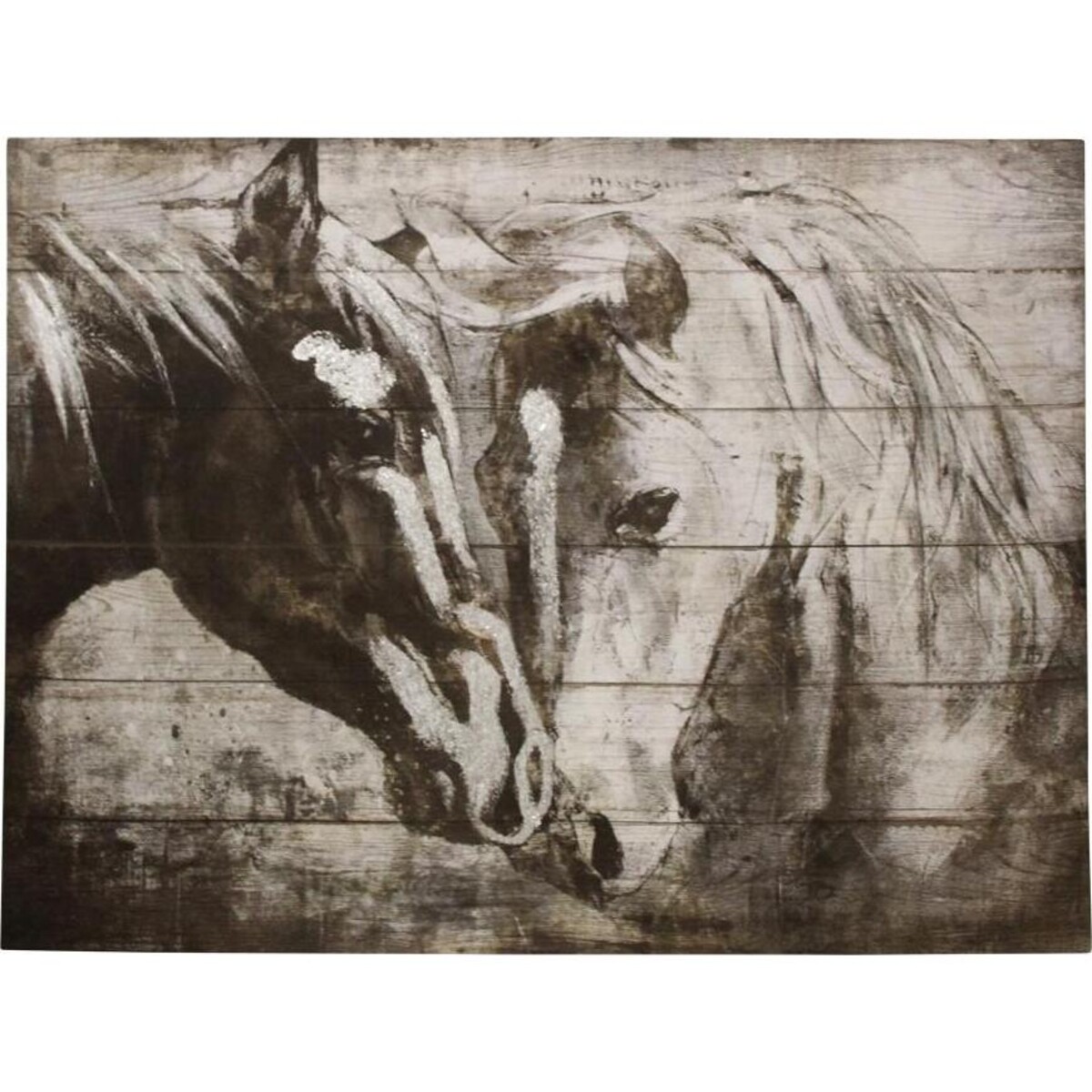 If one looks hard enough this piece of art denotes feelings that are human in every sense though the medium of display maybe through animal figures. The colours are natural tones of silver brown and muted beiges that will stand out albeit quietly. The wall will take on a different meaning with a depiction this unique. The foil highlights will catch the light and its prudent to display it in such manner that it can in fact be opposite the source of light. The paintings ahs proportions that will be most suited for large enough walls and will in fact be suited as much for the living room as for any room that could do with some more pronounced kind of look. A lovely means of depicting something that will catch the imagination of al, the foil painting with its delicate emotions and delicate rendering of material like brush strokes that are delicate and the colours so muted bring out the theme of tenderness ever so strongly. A must for those homes that revel in the human touch, the natural way. The colour tones are most suited for all kinds of decor themes.