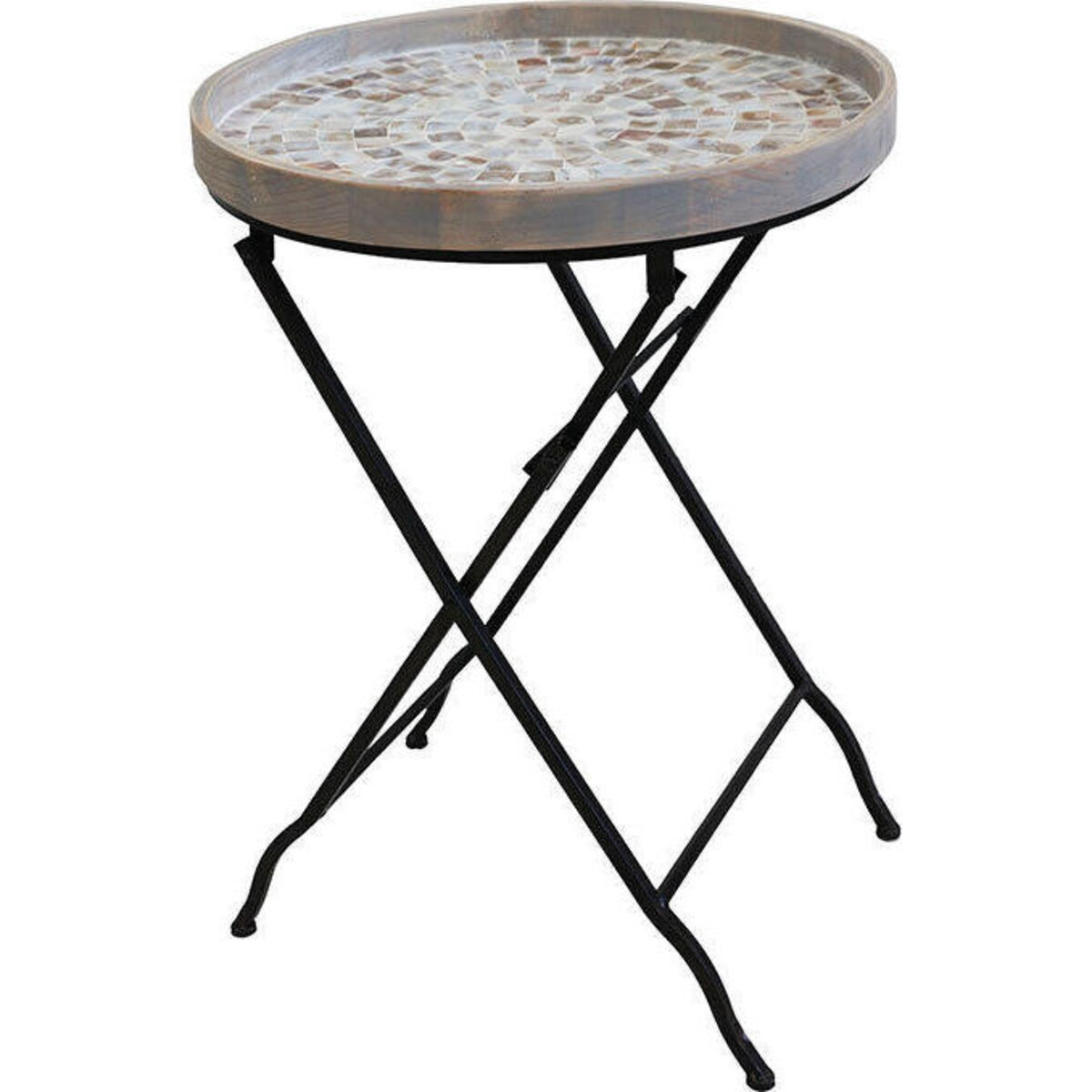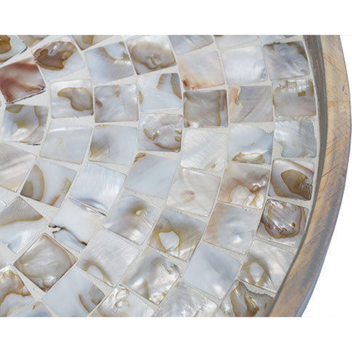 An artistic look at how the most rugged of materials and the most basic of design can create happy marriage with something as delicate, effervescent and almost magically beautiful mother of pearl. This 70-cm high table has a basic structure when it comes to its frame and the lower body while the upper portions is made of a round piece of poplar wood that has detailed inlay with mother of pearl - gleaming gently in its round face. A great way to build a corner that has an oriental or shabby modern appeal. You could use it to layer the living room space - make a niche for some of your artifact displays or simply add it to create a conversation started over coffee-it would on its 50-cm circumference table top hold most of what you try to place there. The metal frame gives it a strong and sturdy feel while the mother of pearl and poplar wood lends it a delicate artistry of work. A beautifully created piece for those who are choosy and discerning about what to place in their interiors.