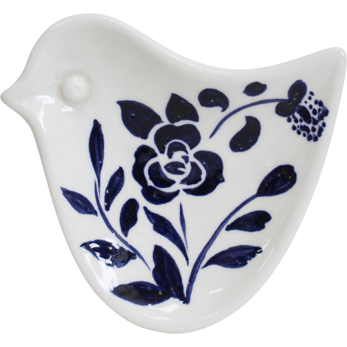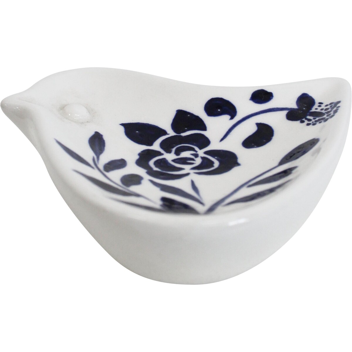 This one's pretty special - a Folk Bird Dish Flora Indigo that blends whimsy with practicality. We love the hand-painted look and that dark blue floral on crisp ceramic, and those 10x9cm dimensions are spot-on for trinkets or snacks. It's just the right piece to draw in customers who want a little folk charm without going overboard on cuteness.