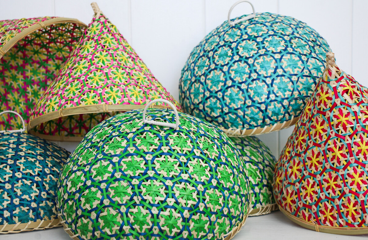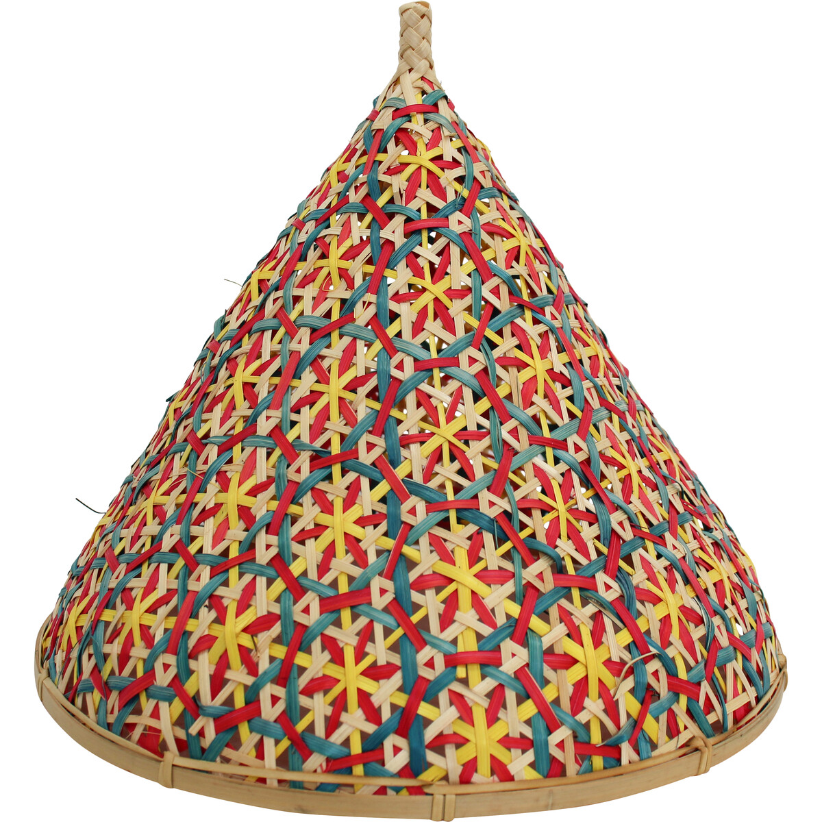 Hallmarking an exciting medley of colours and lively patterns, Food Cover Carnival is a striking home decoration to give one's walls a new look. Plus, the colourful design will breathe that positive ambience into one's dining setting. This cone-shaped food cover is sculpted to be moderately arched and curvaceous. This epitome of simplicity is the perfect way to keep food items safe from debris. It is functional for everyday house use to cover all kind of food or seldom use on special occasions like parties, camping, picnic trips, and beach day. What's more? This can be a makeshift bamboo pendant, an intriguing accessory that hangs from the ceiling and fitting for those areas where one need a cosy light.