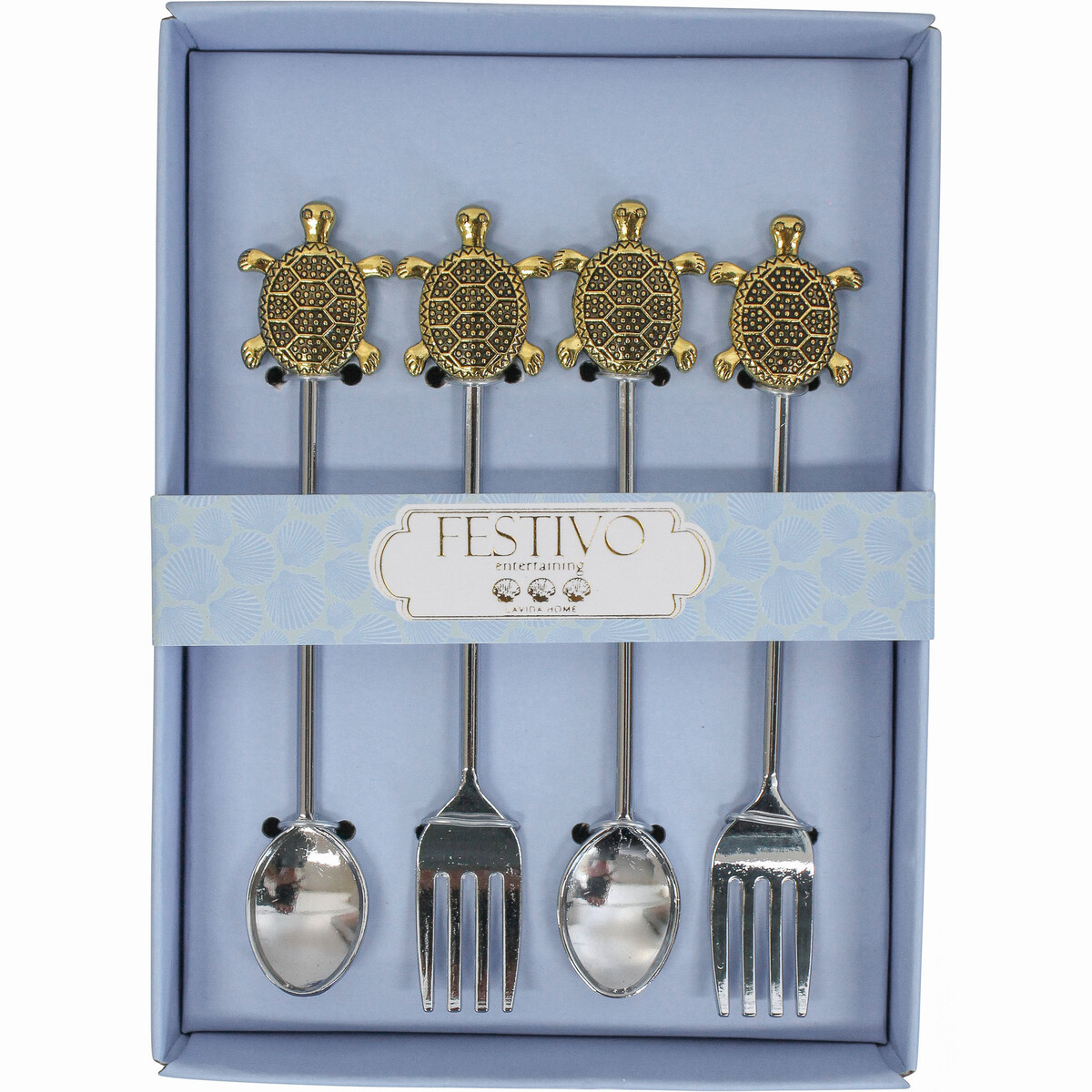 We’re a bit obsessed with the small design details of this Turtle Fork/Spoon Set. It's not just another novelty cutlery pack - you can really tell the artisan finish when you pick them up. We sell quite a few sets in this size range, but the whimsical turtle motif and antique gold finish work beautifully for that coastal, boho, or even beachy Hamptons style. They’re a real conversation starter at wine & cheese parties, and they look brilliant on a cheeseboard.