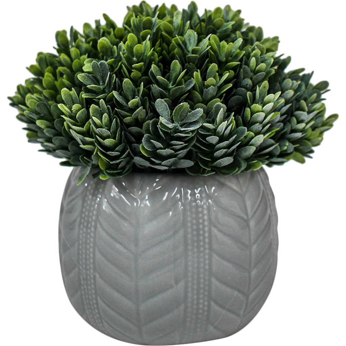 In the bid to give some life to one's mantelpiece, windowsill, and dining setting, the use of the best alternative cannot be overemphasized. Formal Moss Green features short, thick leaves with verdant texture. With the realistic appearance and a lifelike feel, this piece invokes a nostalgic feeling of nature and the countrysides. Ceramic planter is specifically chosen to compliment the brilliant piece. Aside from the fact that ceramics is extremely durable, ceramics are also non-porous and non-hygroscopic. This ornamental piece can be paired with dangling little bulbs, and colourful twinkle lights. It does not require a lot of maintenance. It can be kept looking new with a wipe of a cloth or a simple wash in water.
