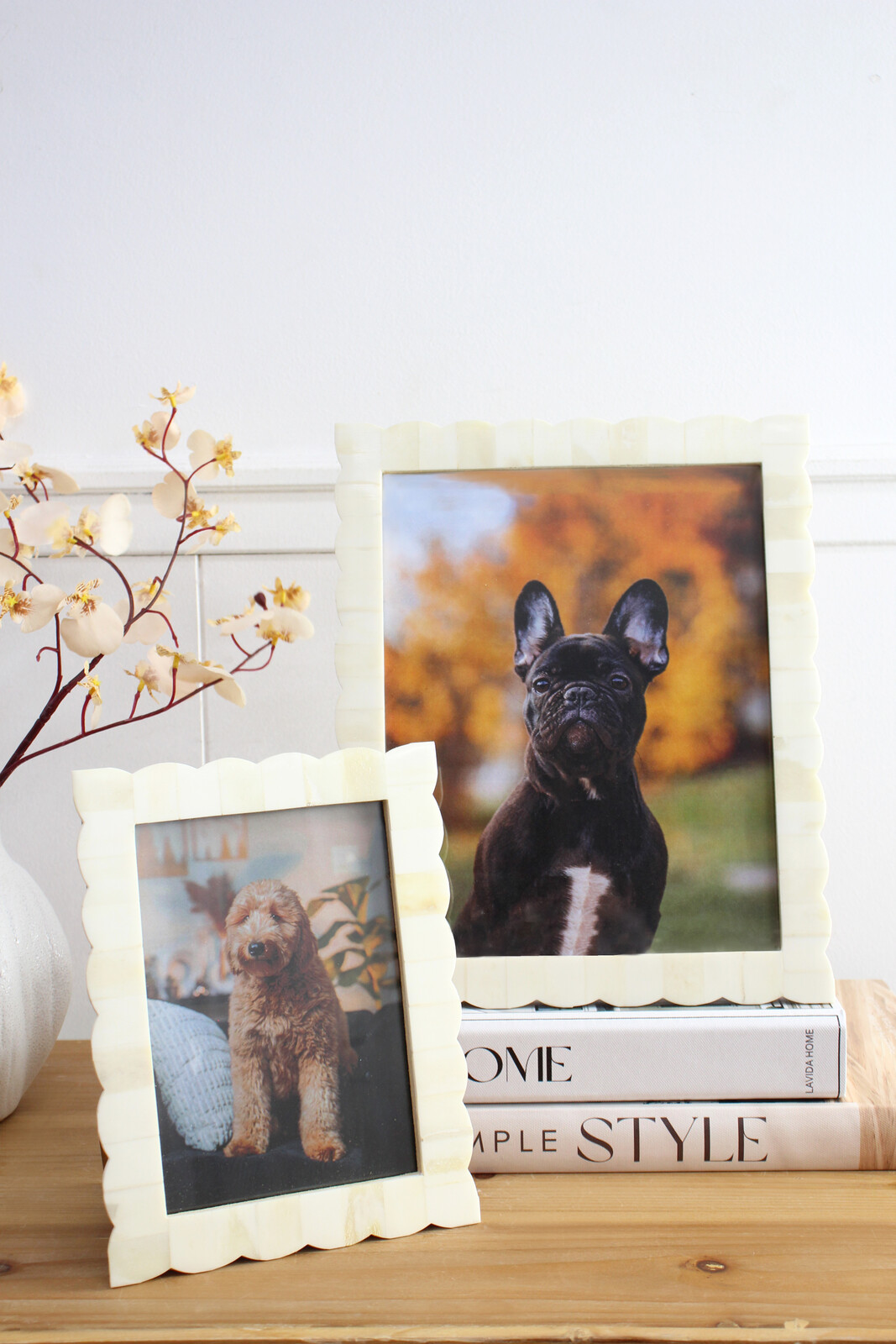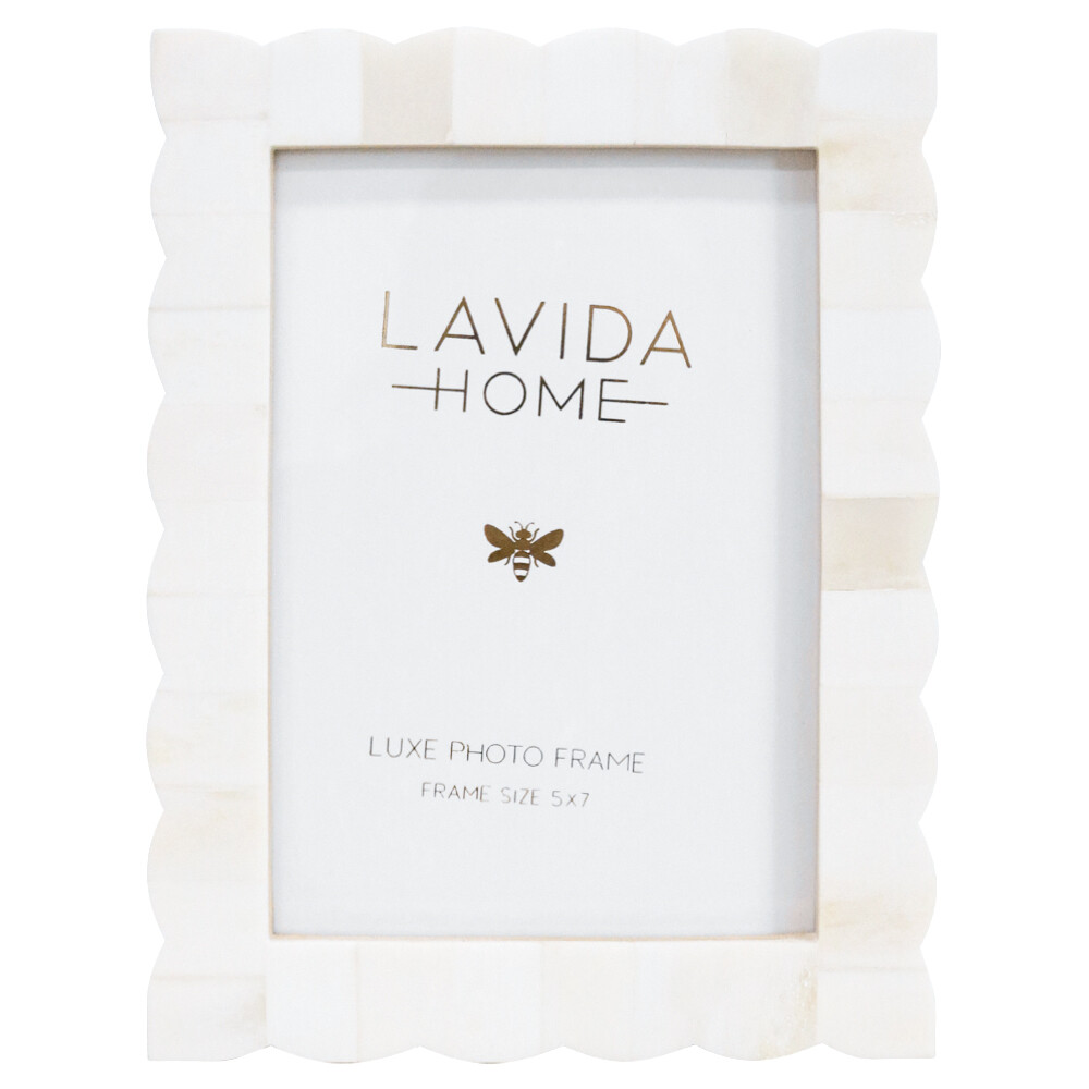 Our Frame 5x7 Scallop is a real eye-catcher with its unique scalloped edges and creamy, bone-white finish. We love how it brings a touch of luxe to home décor without being over the top - and the tactile frame has a lovely weight to it. At 15.24 x 1.27 x 20.32cm, it's perfect for showcasing customers' favourite moments in their living rooms, bedrooms or even offices.