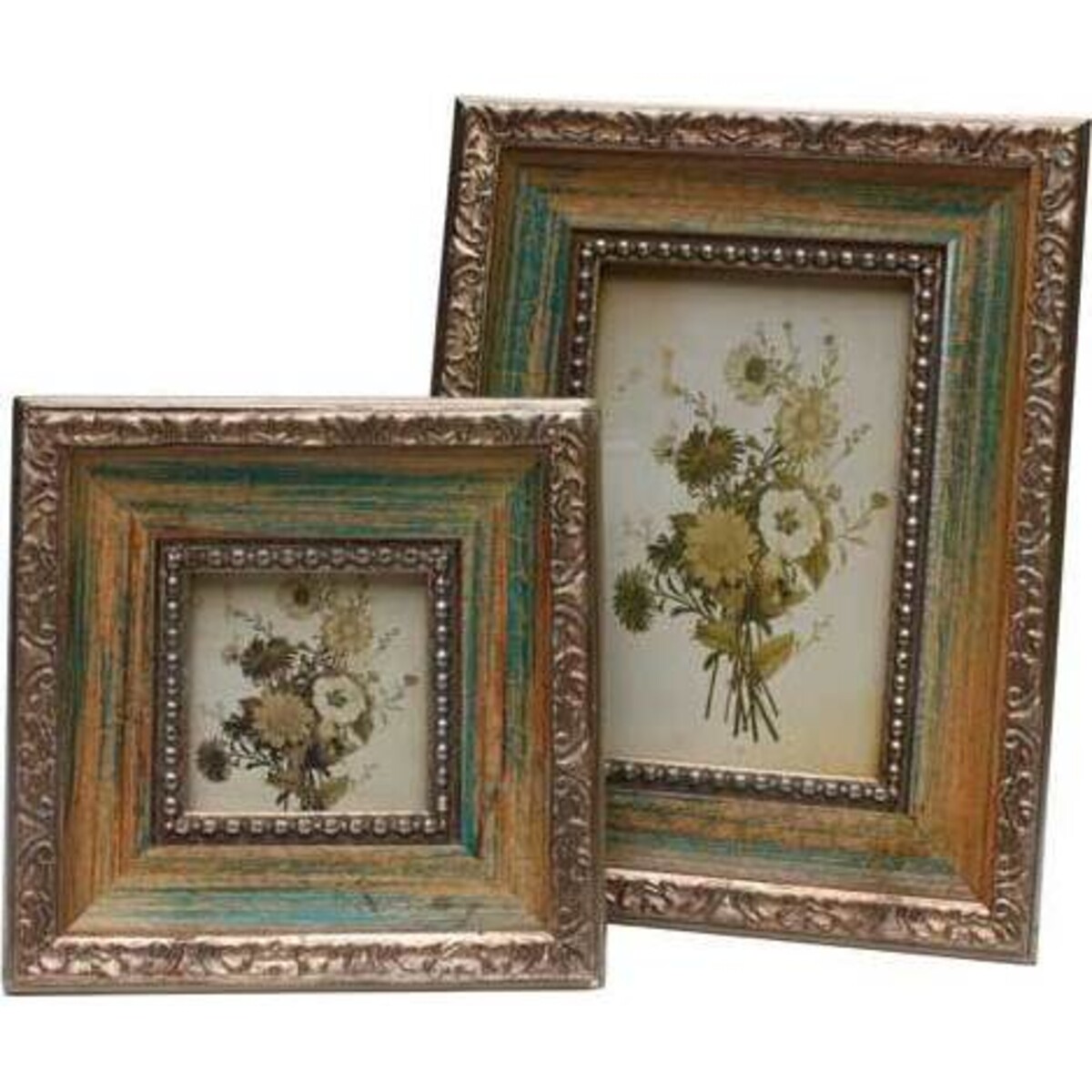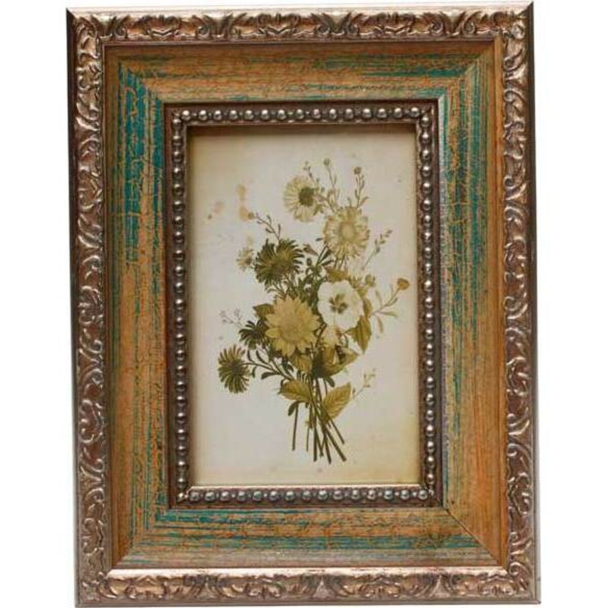 This stunning Aged Gold Portrait Frame is going to be your new favourite piece of artwork in your home. It features an aged picture of a floral bouquet, which is surrounded by a studded border, a teal and wood border then finally, a textured border. It makes your heart skip a beat just looking at it. The aged look of the frame and photo make for a gorgeous piece of art you will want to hang on your wall where you can see it on a daily basis. Considering how lovely it is, who can blame you.