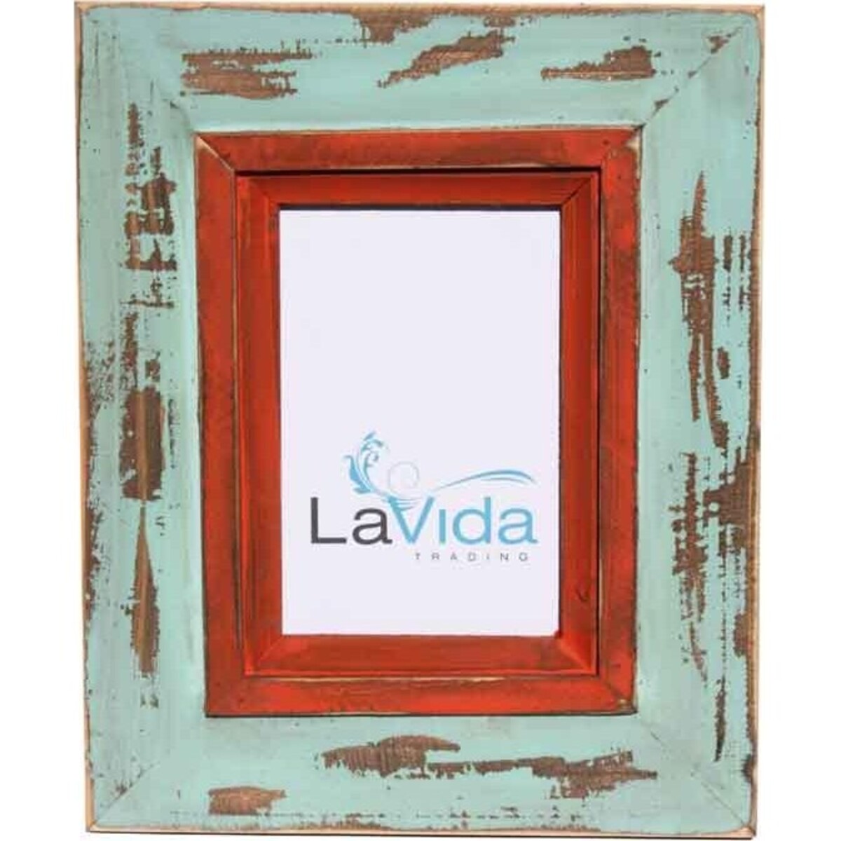The Frame - Aqua Orange photo frame is crafted with textured borders and surface. The outer square design is coloured with light, aqua blue palette accentuated with the rubbed features. The inner square double bordered frame is in deep orange hue with the same vintage and classic finish.