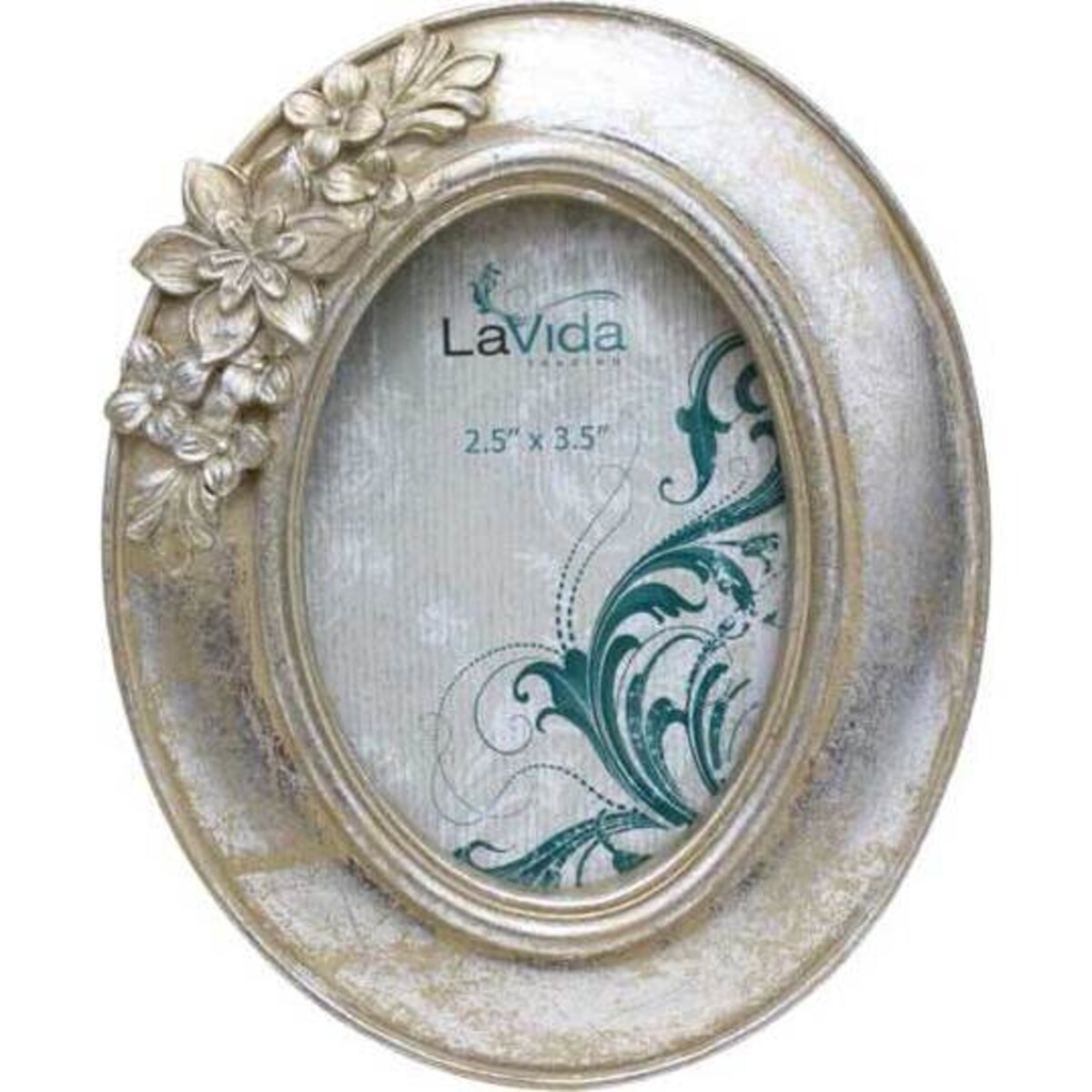 Today, we use picture frames and place them around our homes to remind us of the ones we love. The Argent collection is timeless in its style and works with any type of decor from contemporary to vintage to antique and period furniture. Arrange these little frames with other pieces from this collection or in an all silver display. • Double raised center oval surrounds the picture and leads to a concave beveled border with a smooth rolled outer edge • Small flowers and leaves extend from a large central flower creating a spray at the top corner • Lustrous silver finish is distressed so the frame has the look of a true vintage piece to be cherished for many years.