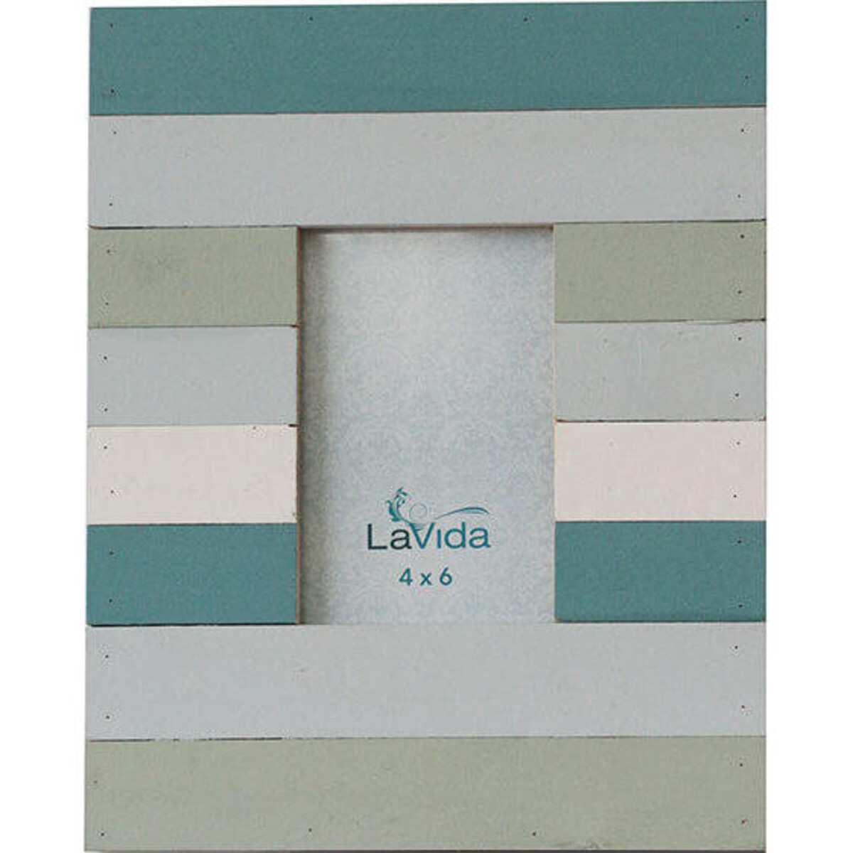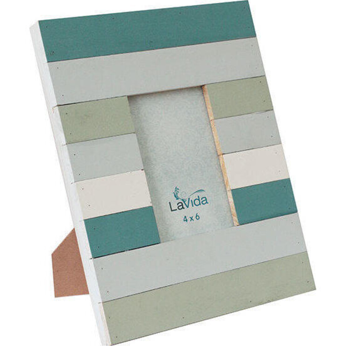 Dress up your home in things that bring a smile on your face and helps the space gain a personalized look. Photos need great frames that do justice to their beauty. Too bold a design and one would take way from the picture which is why this striped pattern frame in beige, white, grey and blue makes the impression of sobriety and class, that adds more beauty to the picture. Made from high quality wood and given a well - conceived design the frame can hold a picture that is 6 inches in height and 4 inches in width - in fact would be simply great for a portrait. Place several such frames on the mantle or the console and see the way the space will gain lively touch of your past and the warmth that only great memories can bring with them. A lovely addition for your home and wonderful gift for someone you know needs to bask in the warmth of old memories. The height of the frame altogether is 30 cm while the width is 24 cm, making it quite a prominent display wherever it is placed.