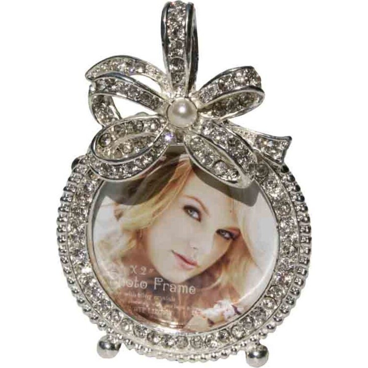 Why let pictures wear inside photo albums where others cannot see them? Put those precious photos of family or friends, or even individual portraits in this gorgeous looking picture frame: the Frame bow Diamonte. The round frame is a diversion from the traditional square and rectangular shapes of picture frames, making it look unique and different. The frame is bordered by small crystal like jewels that gives the item a rich and lavish look. However, the main attraction of the item is the beautifully carved bow on top of the frame. The bow is a series of knots and ties that forms one big ribbon. Aside from the wonderfully tied ribbon, another feature of the frame that will surely attract the attention of anyone is the brilliant white pearl right in the middle of the bow.