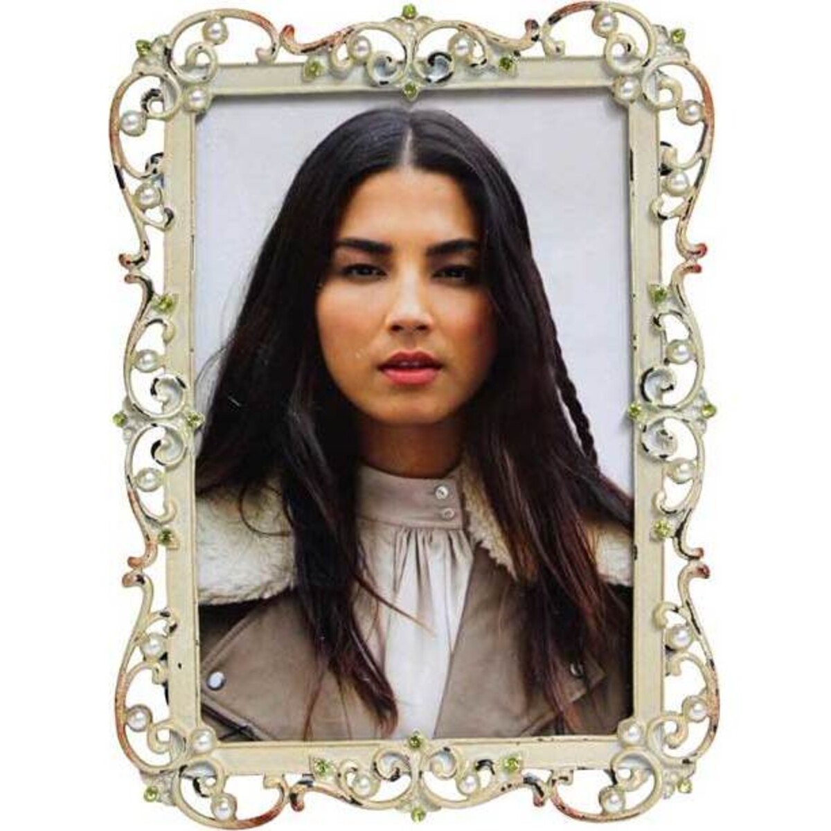 Introducing the Diamonte Scallop Frame from Lavida. This gorgeous white frame features a scalloped and embellished border you can't help but fall in love with. It's slightly worn in certain spots to give it a fabulous aged look. You're going to find any excuse to use this frame and put it right where you can see it on a daily basis.