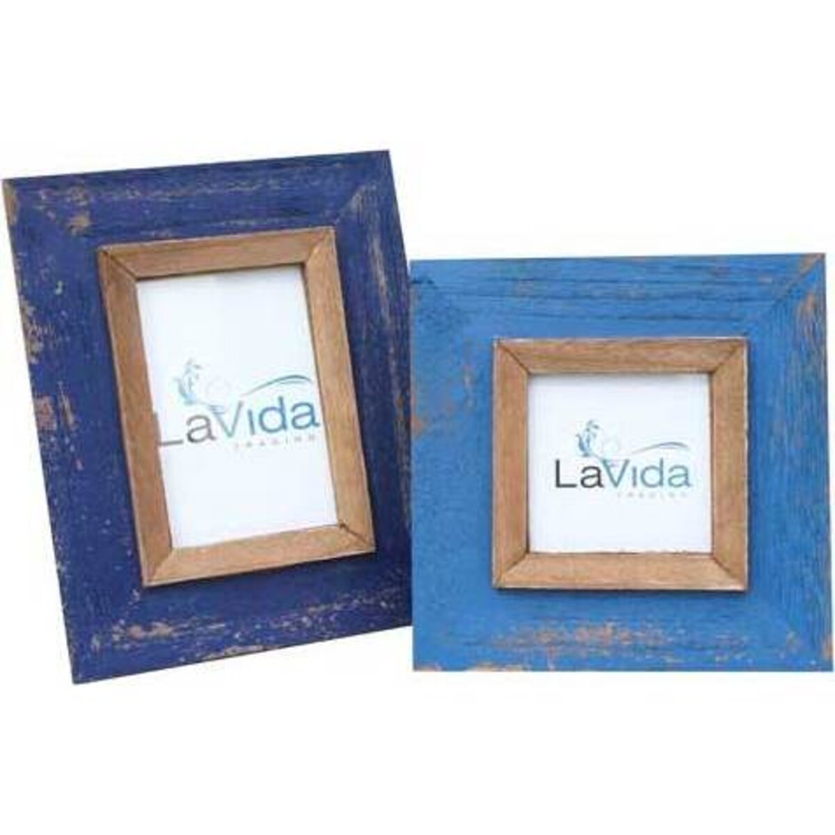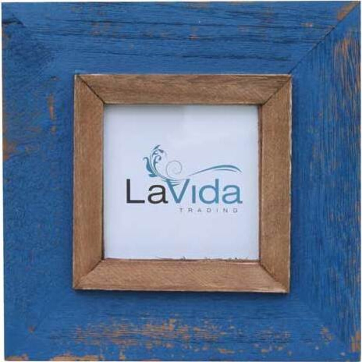 Almost as if it belongs in a beach house, this antique - looking square picture frame will look beautiful surrounded by seashells or hanging on the wall of the bedroom. Surrounding the 4x4 inch centre is a light wooden border, which is then surrounded by a deep blue wooden border. The faded and scratched up blue paint gives off an antique vibe that is just beautiful. Place a photograph of the family or friends in the centre and surround it frames from the entire collection!