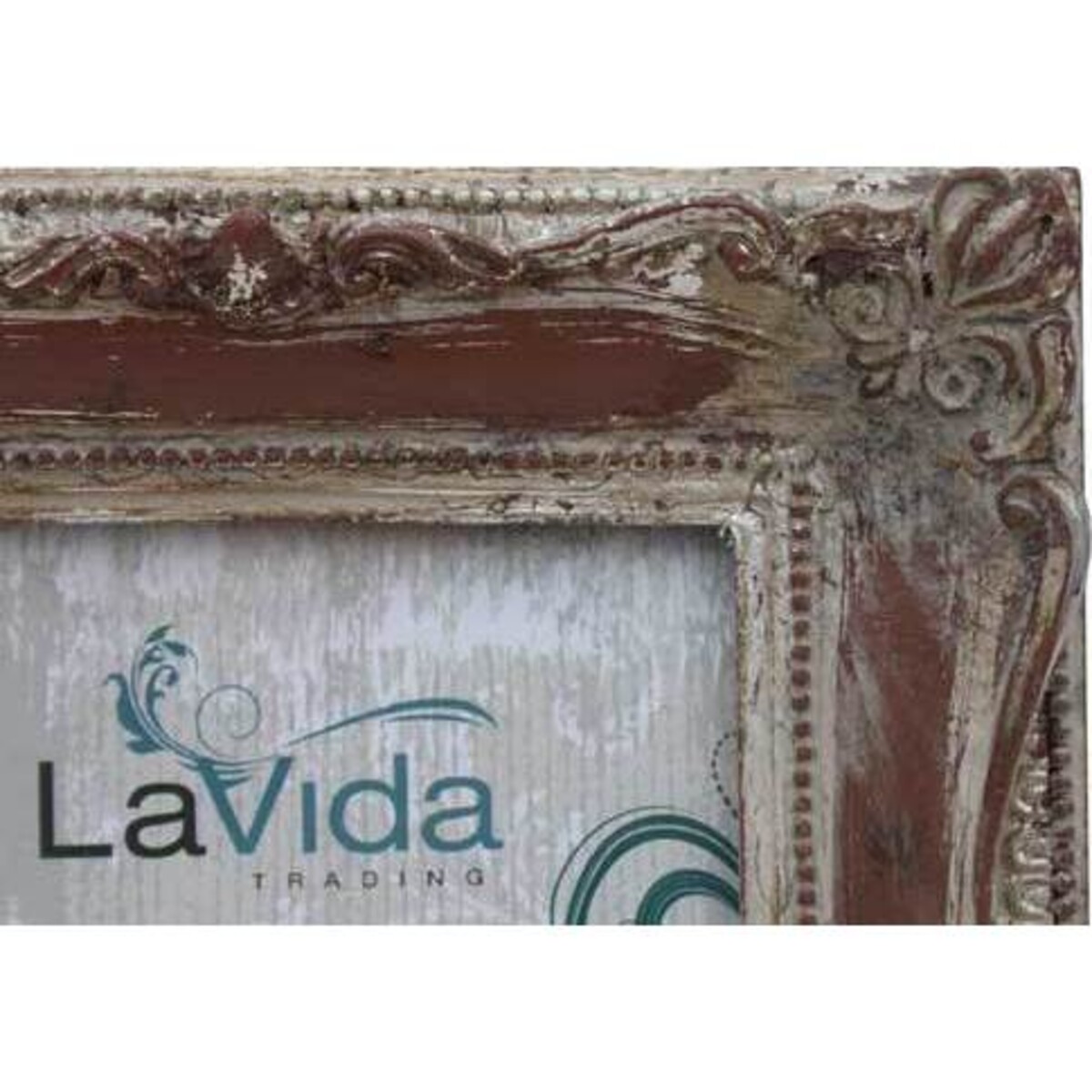 ¥ A beautiful partial whitewash over the brown wood frame results in the look of an aged piece.