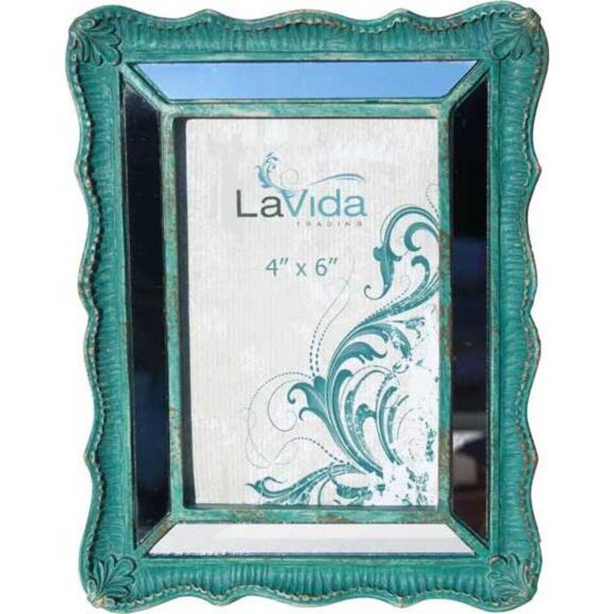 The total size of this leaf shaped green frame is 17 x 22 x 2 cm. However, the actual frame size excluding the border is 4 x 6 inches. The size of the frame is big enough to display group photographs or family pictures. The curved border is deep sea green in colour. The frame is vertical with the two opposite inner borders in black while the other two in blue and white. The colours of the border are so beautiful and opulent that they bring out the best in any picture inserted inside it. The frame can be placed anywhere in the house like the bedrooms, living rooms, halls etc.