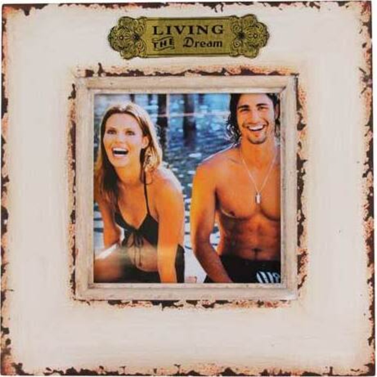 These cream - coloured frames feature the phrase, "Living the Dream," written in black on gold at the top in the centre. The frames feature brown detailing along the inner and outer borders to give them an aged and weathered appearance. They're ideal for yourself, of course, but considering the message, they would also be great to give as gifts They're especially wonderful for those who are celebrating a new milestone, such as getting married, landing a new job, moving to a new home, or having a baby.