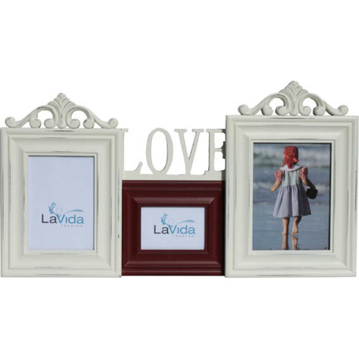 The Frame-Love Marco combines three elegant photo frames in one stylish form. They are also arranged in such a way that they create beautiful asymmetry - the left photo frame being smaller and the right photo frame being bigger. Sitting in the middle of the two snow white photo frames is a smaller one that comes in dark brown colour.