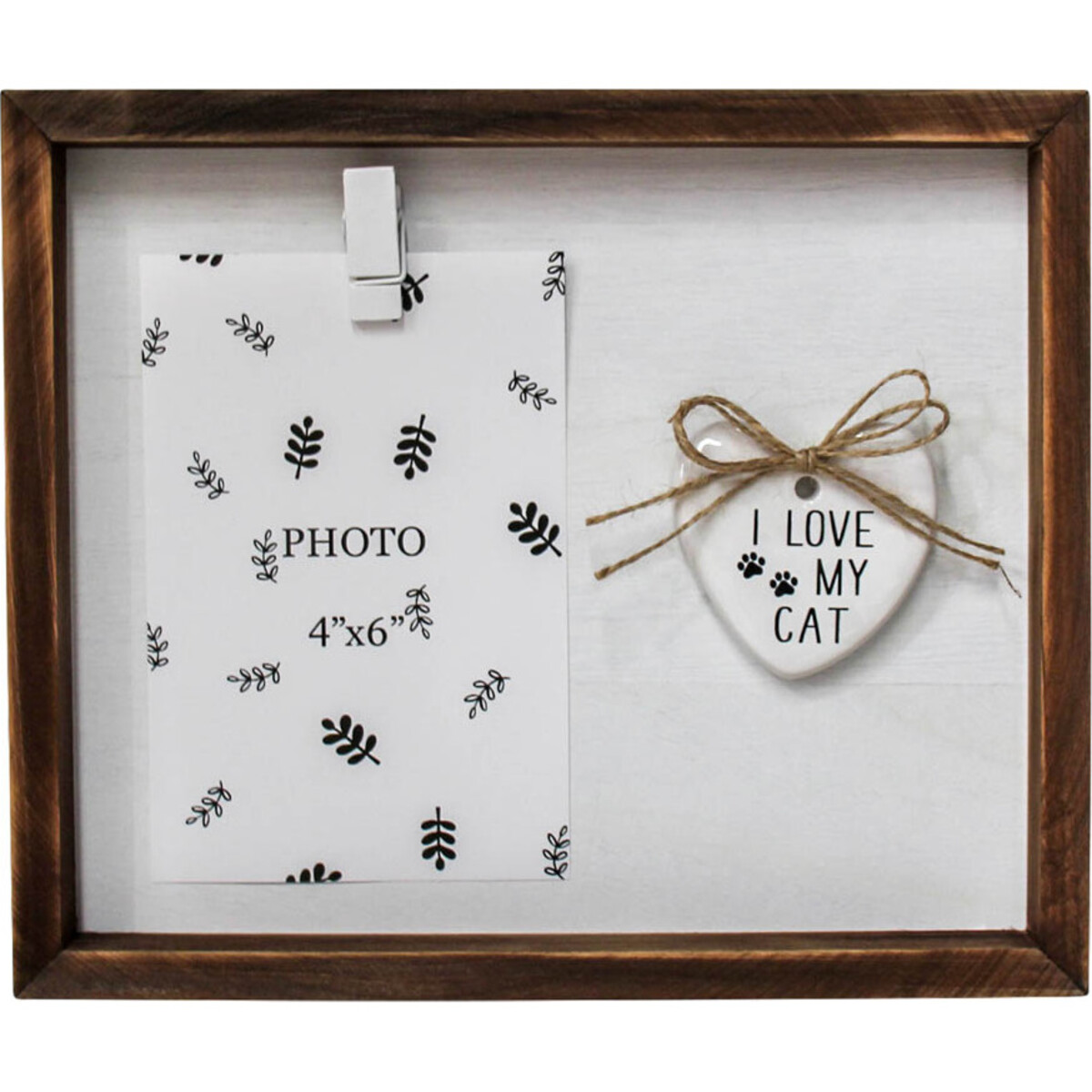Crafted from high-quality wood and glass, this frame boasts durability and a rustic charm that really complements various décor styles. Whether it's displayed in the living room, bedroom, or office - it fits right in and adds warmth to any setting. The highlight? Its delightful “I Love My Cat” heart-shaped plaque that’s finished with a sweet bow - guaranteed to catch your customer's eye.