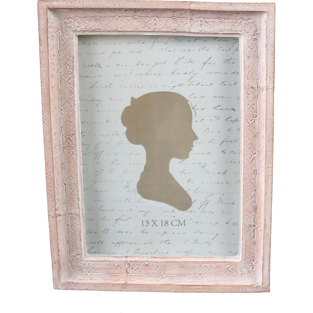 Make a subtle splash of colour and design with this gorgeous frame made to be as sturdy as it is delightfully ornate. Add the touch of French style and glamour in an elegant colour as subtle as pink. The light ornamentation along the outer edge and the usage of a beautiful pattern along the inner indent adds to giving the picture it shall be holding, a certain kind of doeth and focus. The glass covered central panel will be large enough to hold a large portrait. Add several such pictures on your wall or the mantle or console. Add a lamp of a silver candelabra and see the effect the entire space will begin to reflect. A wonderful means to make your home wear a graceful look. The height of the frame that has an easel back is all of 21.5 cm and its width is 16.5. it will hold a picture that is 18 cm in height and 13 cm in width.