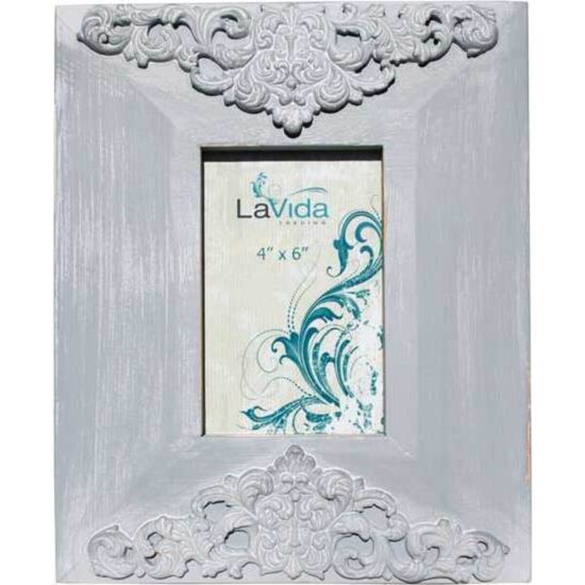 Each 4x6 frame features a gray base with a stunning scrolled design set in a triangle formation at the top and bottom of the rectangle frame. It beautifully accents any photo it holds, and considering its design, it can complement any photo from a casual one depicting playtime to one from your wedding. You'll look for any excuse to place these frames around your home, and considering their exquisite design, who could blame you? While they'll look lovely on your own walls, they would also make a fabulous gift for any occasion.