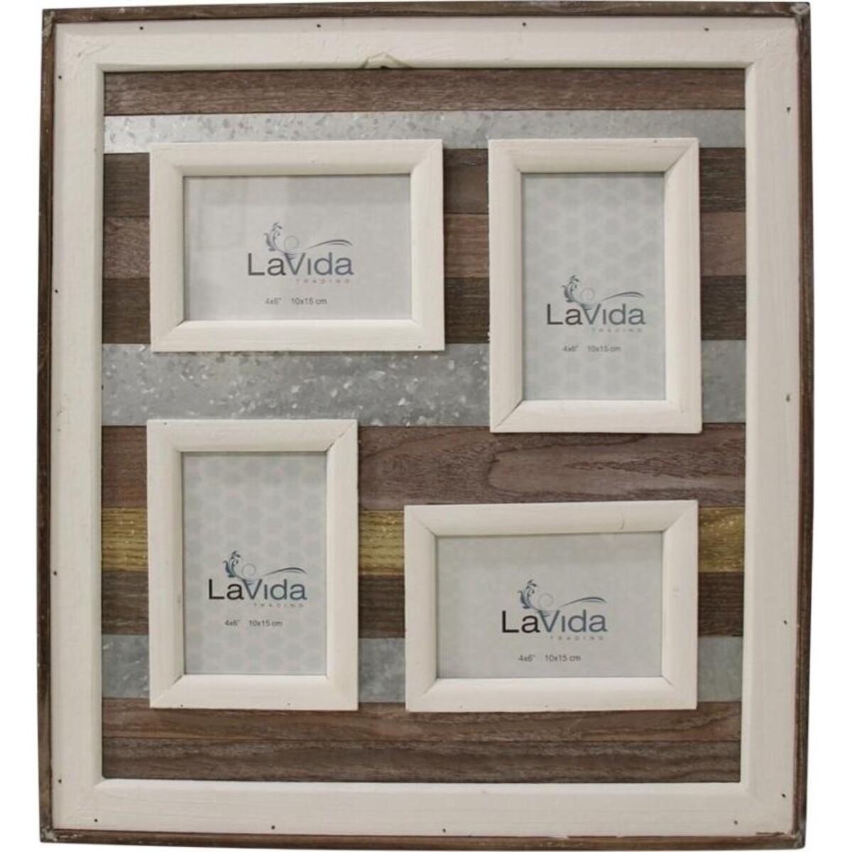 Your life has been as much about the people who made you who you are today to all those moments and experiences that define you. Make such moments captured for eternity, part of your décor and lend them a stunning stamp of your unique personality. Be it family portraits or pictures of you growing up or the first baby pictures of your son or daughter - they can now be collectively displayed in this frame made with precisely thus intention - giving you the option of placing several pictures together. A wonderful choice if you wish to show progression or some tiny childhood portraits or a collection of sibling pictures all in one frame. The sturdy wood made frame comes with four little windows with an inner frame if white colour and a backdrop made up of wood strips in many hues. The outer frame in white coordinates beautifully with the rest of the look. A splendid means to dress up your side board, dresser, or the mantle. The frame is 46 cm tall and 41 cm wide and thus would look fabulous placed on the wall as well.
