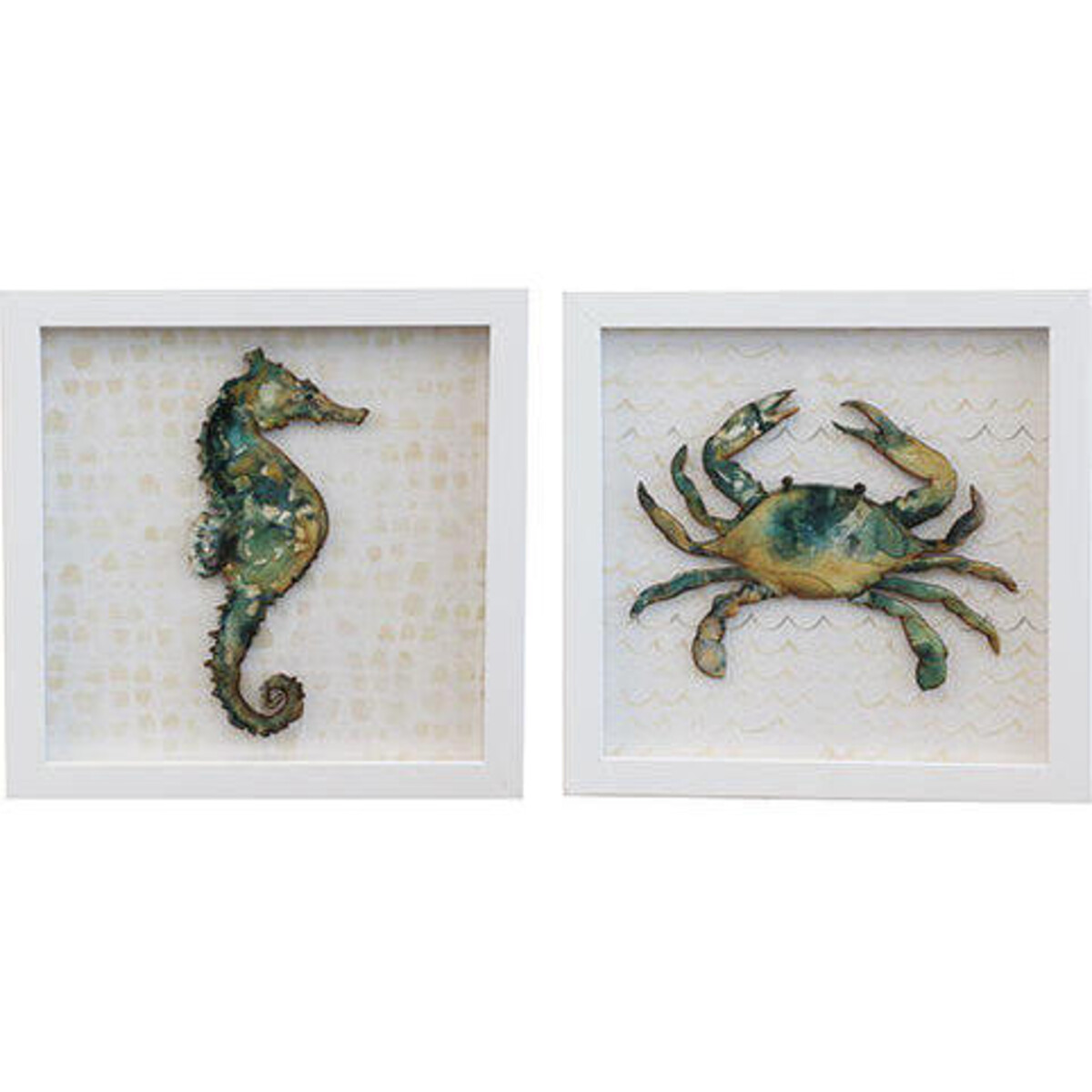If the ocean world has baffled you with its unlimited scope of knowing and discovering, here is a graphic representation that could fill you up with more wonder. The two images, each of a unique creature in myriad colours are set against a white backdrop which helps highlight their shape and colour all the more. They make a wonderful pair apt for those spaces that need something to elevate their levels of interest. The gorgeous creatures in their own simple way lend your space that much needed focus which your theme may be needing. Square in shape, the two prints could be placed side by side or one above the other. Whichever way their 34 - cm square dimension would fill up an adequately large space on the wall and make these two creatures the focus of much attention. Simply add some shells and blues and whites in the upholstery for more effect.