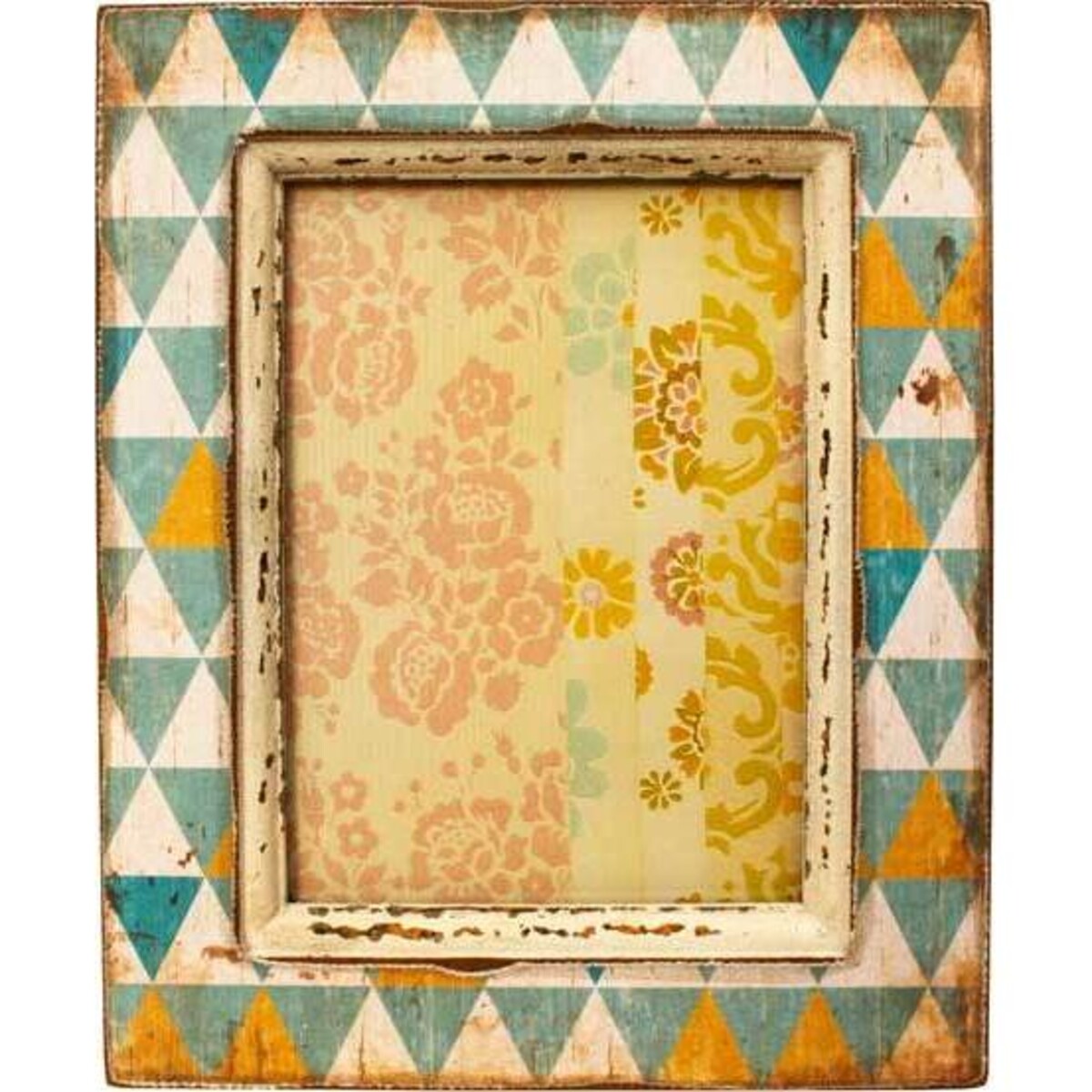 These Repeta Print Frames from Lavida feature a centre solid white border and a blue, white, and yellow triangle pattern all across the frame. They're carefully aged to give them a weathered appearance, as if they were plucked right out of an attic and placed on the shelves of an antique shop. The frames are ideal to showcase older photos, especially those that have blue or tan undertones. They make wonderful gifts, especially if you fill the frames with pictures for the recipient before presenting them. You'll love how wonderful pictures look in these charming decorative accents.