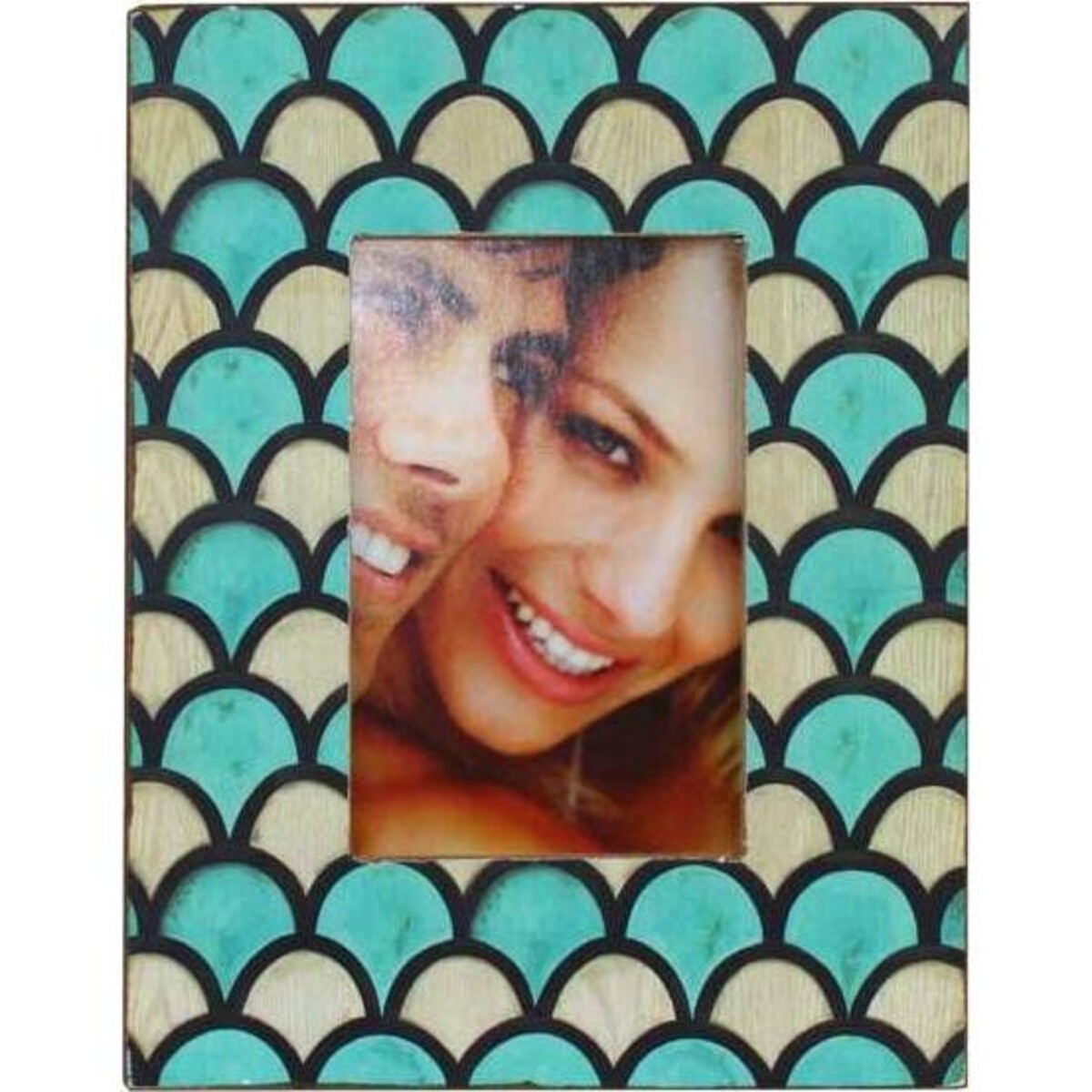 Photo frames are a great way of adding a little decor accent as most people are by and by realizing the potential they possess in not juts showcasing pictures well , but the frame itself being a great way of enhancing a theme of the decor or a way of adding a colour dimension to the space. This scalloped design photo frame has been beautifully crafted and has been given shabby chic accents that makes it look all the more attractive. The vivid blue and white pattern can do wonders for drawing attention to pictures that are precious. The wooden frame has been immaculately finished and given a vintage look with slight distressed paint on the edges. The size is most suitable for placing a portrait. Kept on book cases, mantelshelves or tables it will add colour as well as a great deal of beauty to that space.